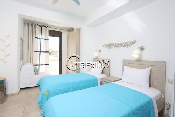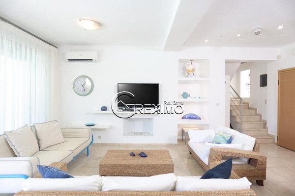 Das Haus bietet beeindruckende Panoramablicke auf das Ägäische Meer und betont den mediterranen Charakter der Immobilie. Diese Aussichten vermitteln ein starkes Gefühl von Ruhe und Privatsphäre.