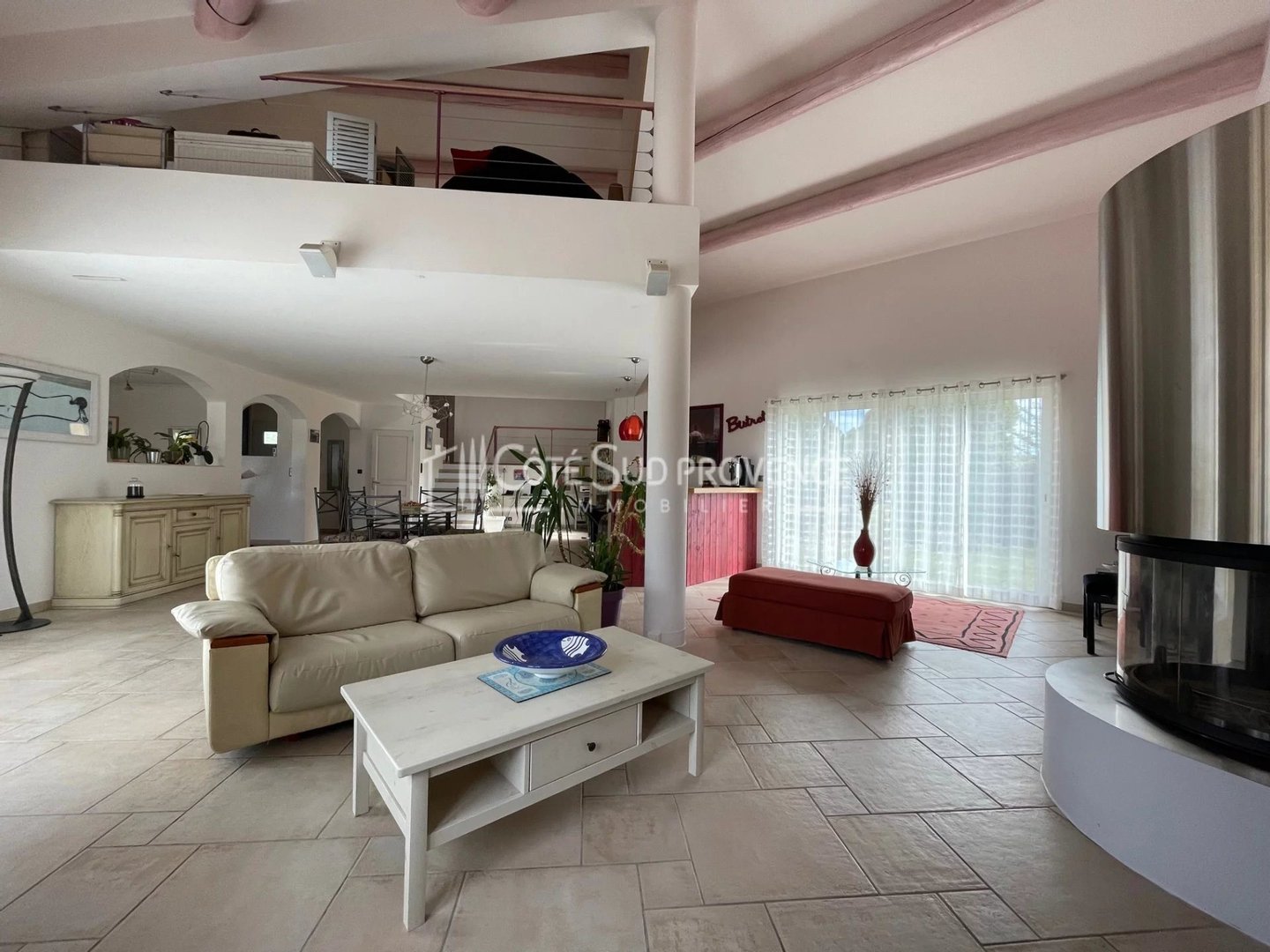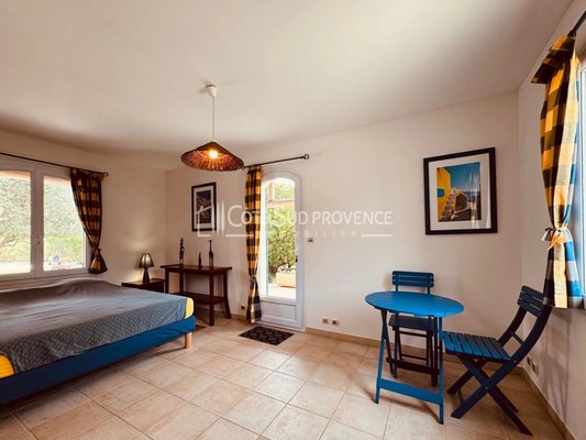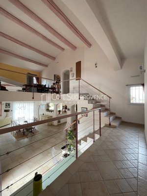 In ruhiger Lage, 40 Minuten vom TGV Avignon, Süd-Mont-Ventoux und 15 Minuten von Gordes, alle Geschäfte zu Fuß im Dorf Saint-Didier. Moderne Villa, 2005 erbaut, ca. 240 m² auf zwei Ebenen, Eingangshalle, separates WC, Einbauküche von 21 m² offen zum Wohn-/Essbereich mit Kamin 72 m², 5 Schlafzimmer, 3 Badezimmer, ein Bad mit WC, Flur, separates WC, Empore 7 m², Mezzanin 25 m², das Ganze auf einem eingezäunten, bepflanzten Gartengrundstück, Parkplatz im Norden für 4 Fahrzeuge. Anwesen in Renovierungsarbeiten zur Verschönerung im Innenbereich, außergewöhnliche Lage und dominante Aussicht.