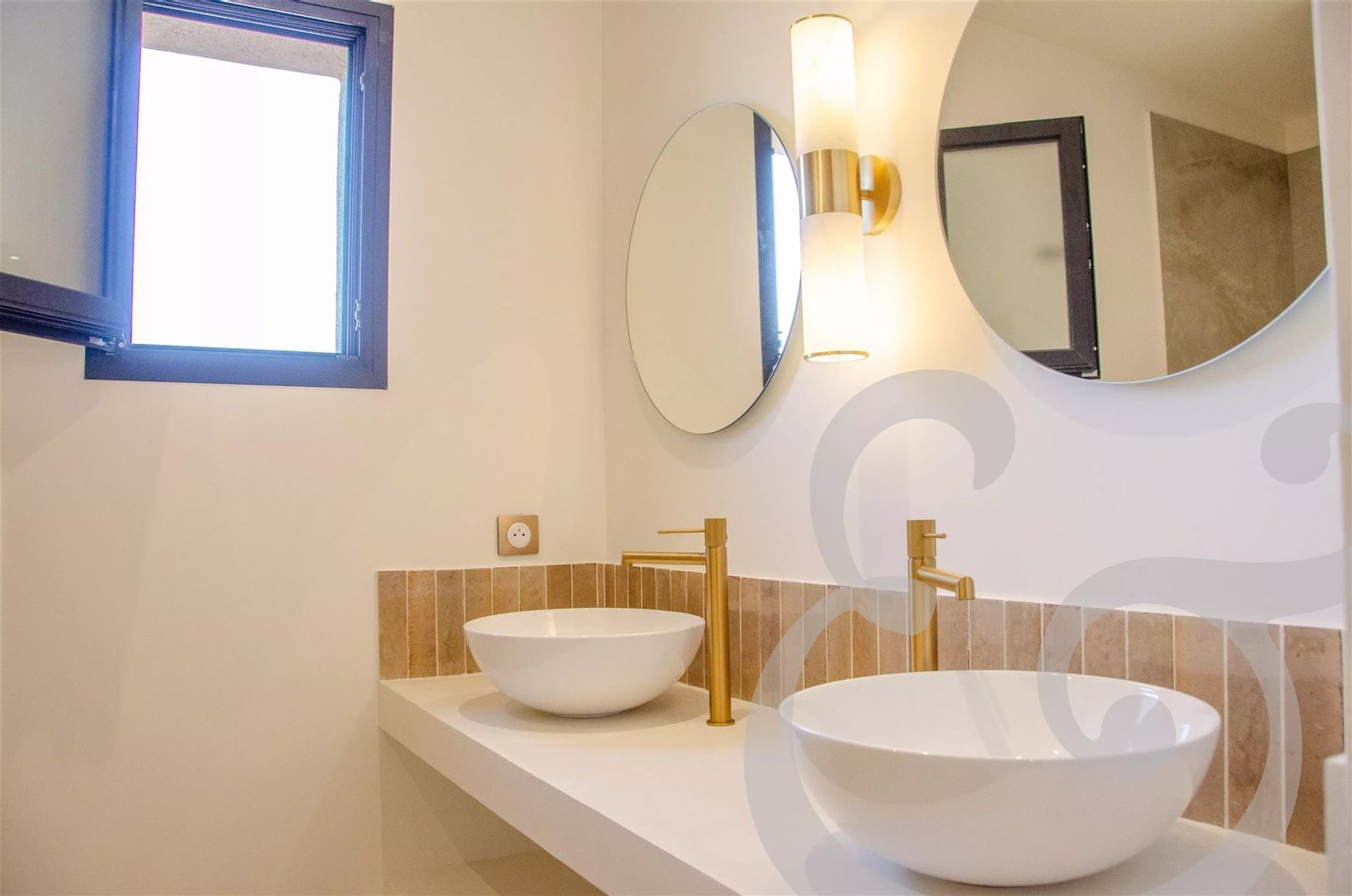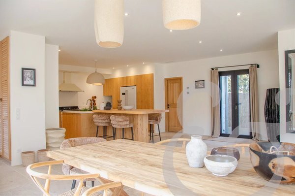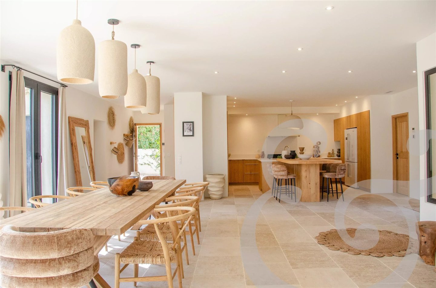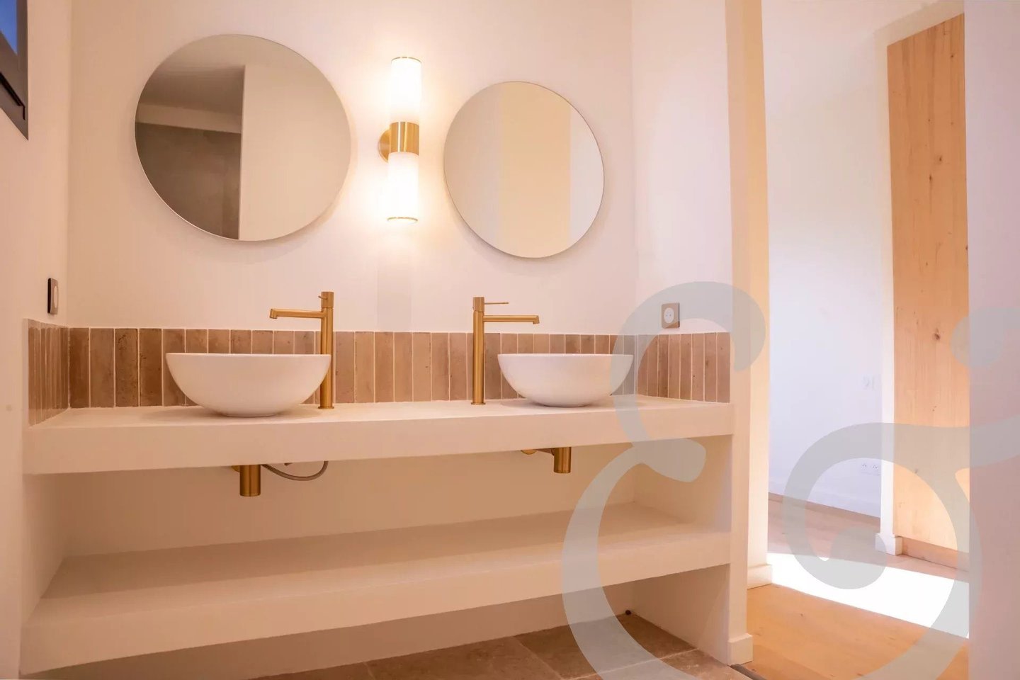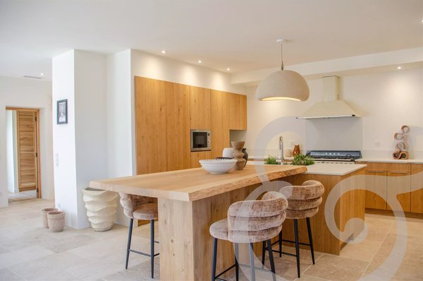 Gelegen nur wenige Minuten vom Zentrum Saint-Rémy-de-Provence entfernt, verbindet diese hochwertige, erst kürzlich realisierte Immobilie perfekt provenzalischen Charme mit erstklassiger Ausstattung. Mit über 300 m² Nutzfläche besticht sie durch außergewöhnliche Räume, Eleganz und hochwertige Ausstattungen. Das Erdgeschoss eröffnet einen Wohnbereich von über 150 m², bestehend aus einem Wohnzimmer mit Kamin, einem hellen Esszimmer und einer voll ausgestatteten Küche mit sorgfältigen Oberflächen. Eine verglaste und rückbelichtete Weinkellerei verleiht dem Ensemble viel Charakter. Eine erste Master-Suite von 38 m² mit maßgeschneidertem begehbarem Kleiderschrank mit Türen aus massiver Eiche und eigenem Bad rundet diese Ebene ab. Oben befinden sich drei weitere Suiten, jede mit eigenem Bad und separater Sanitäranlage. Ihre sorgfältige Gestaltung gewährleistet optimalen Komfort für alle Bewohner. Die Außenbereiche sind wie echte Wohnräume gestaltet: Zwei Vorplätze zur Straße hin ermöglichen einen Sommeressbereich, während der gestaltete und dezent beleuchtete Garten die Architektur der Immobilie in Szene setzt. Der 9 × 5 m lange Pool geht in einen eleganten Entspannungsbereich über, der eine Sommerküche, eine Dusche und separate Sanitärräume umfasst – für eine perfekte Autarkie. Ein Bocciaplatz rundet das Gelände ab. Eine isolierte und gesicherte Doppelgarage von über 50 m² sorgt für zusätzlichen Komfort und stärkt den vollständigen Charakter dieser seltenen Liegenschaft, die sowohl als Hauptwohnsitz als auch als Ferienhaus oder als hochwertiges heritage-Investment geeignet ist.
