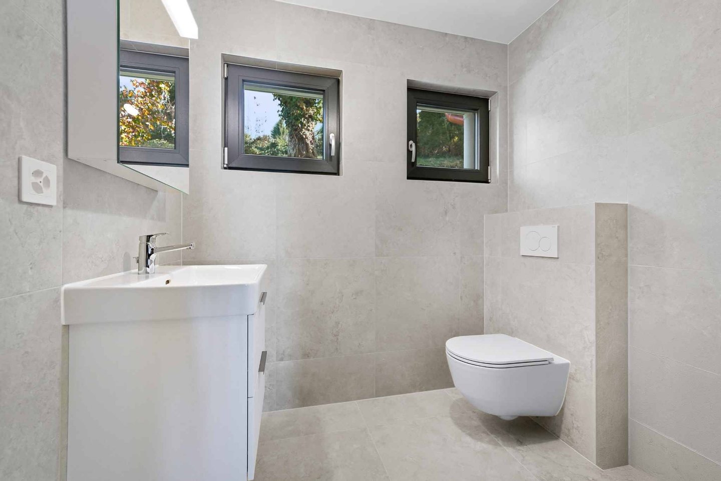 Da die Villa 2025/2026 renoviert wurde, präsentiert sie sich in einem Neuzustand, mit sauberen Oberflächen und hochwertigen Materialien. Das Heizsystem wurde auf ein System mit Wärmepumpe und Photovoltaikpaneelen auf dem Dach umgestellt. Das Dach profitiert von neuer Dämmung, ebenso wie die Fassaden von zusätzlicher peripherer Dämmung. Die Fenster sind dreifach verglast. Das Haus entspricht somit vollständig den heute geforderten Energiestandards.
