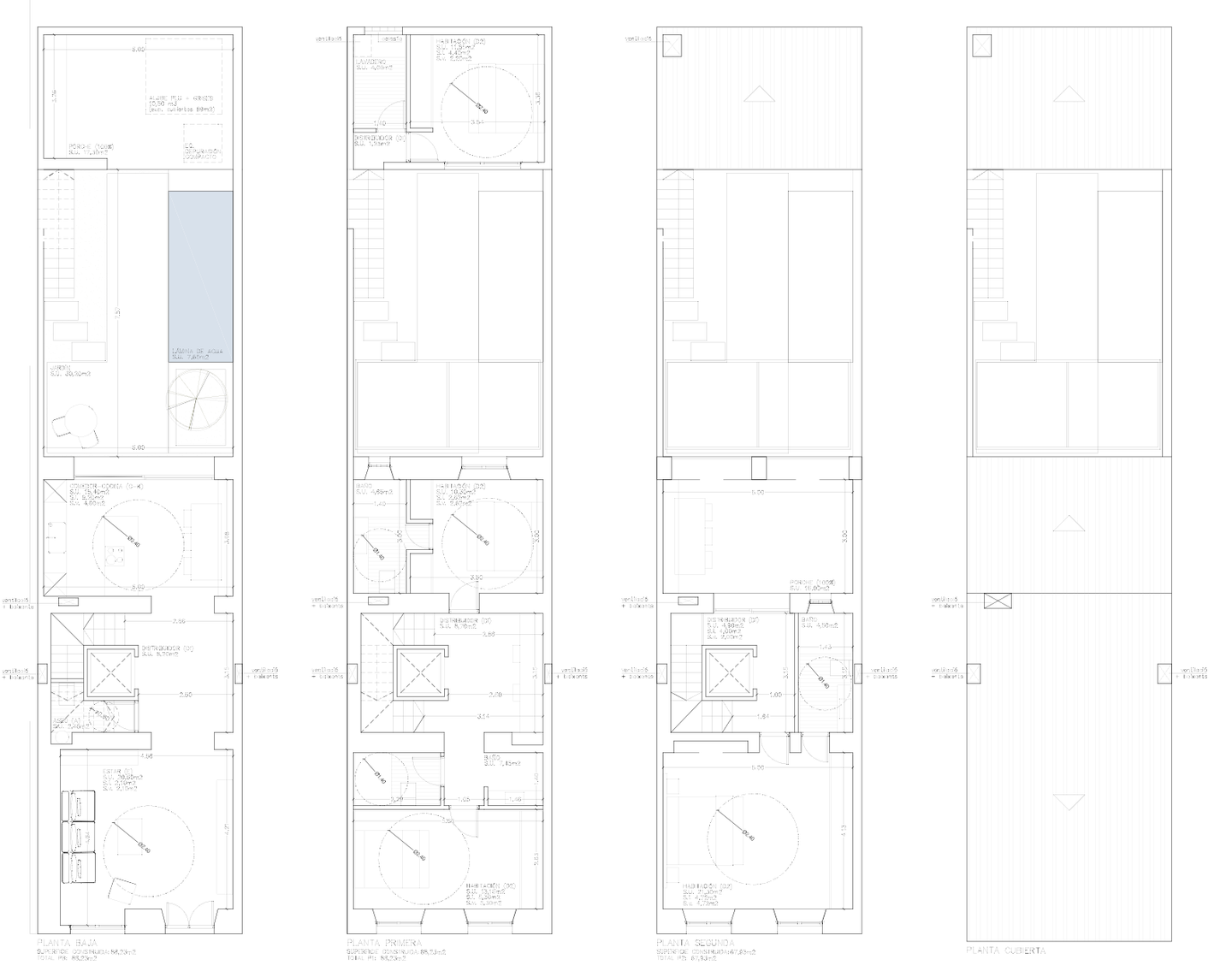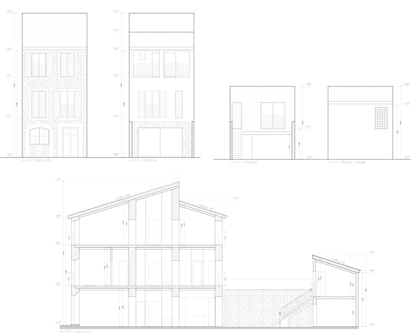 Auf einem Grundstück von ca. 142 m² entsteht eine bebaute Fläche von rund 229 m² mit etwa 220 m² Wohnfläche, verteilt auf drei Ebenen sowie eine Dachterrasse. Das genehmigte Neubauprojekt folgt einer klaren architektonischen Linie: Naturstein, Holz und hochwertige Materialien schaffen Wärme und Struktur, während moderne Haustechnik wie Wärmepumpe, zentrale Klimaanlage und Aufzug zeitgemäßen Komfort bieten.