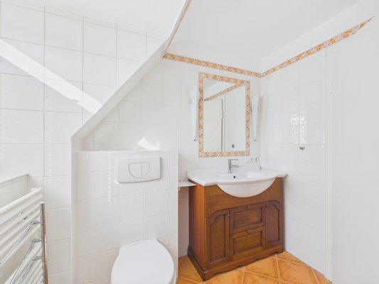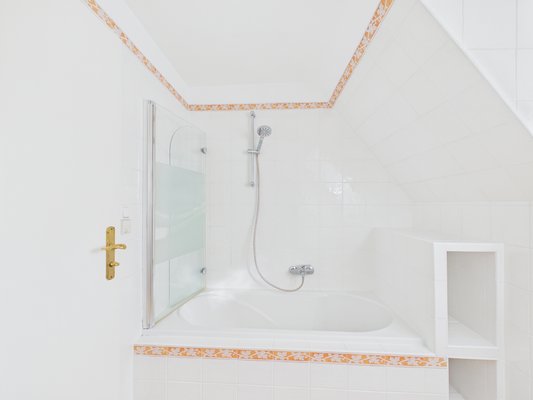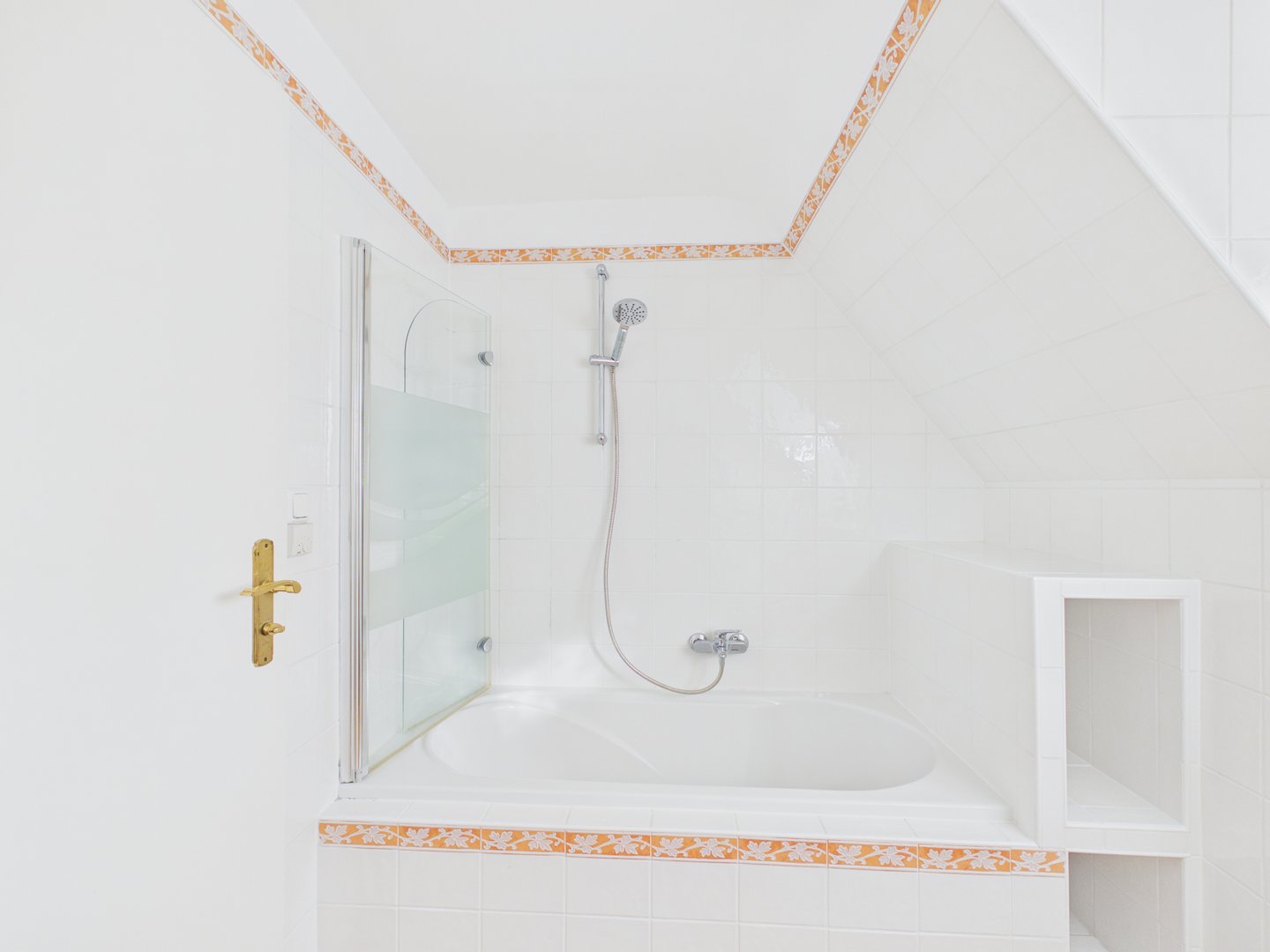 Beide Einheiten verfügen über vollausgestattete Badezimmer: Das Erdgeschoss-Bad mit Wanne und separater Dusche, das Obergeschoss-Bad komplett gefliest und gepflegt. Im Dachgeschoss sorgen Dachflächenfenster für viel natürliches Licht. Ein Kaminanschluss ergänzt im die Wohnbereiche mit behaglicher Atmosphäre an kühleren Tagen.