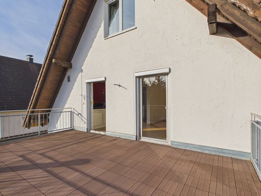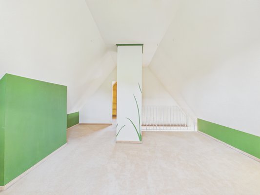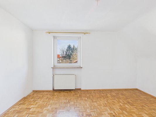 Die Obergeschoss-Einheit bietet ca. 75 m² Wohnfläche auf zwei Ebenen. Im ersten Obergeschoss: ein großzügiger Wohnbereich (22,94 m²), ein Schlaf- und Arbeitszimmer (12,97 m²), eine hochwertige Küche mit Granitarbeitsflächen und sehr gepflegten Markengeräten (9,87 m²), Bad (5,04 m²) und ein weitläufiger Westbalkon (22,56 m² Nutzfläche). Hier kann man sofort einziehen – kein Kompromiss, kein Zwischenschritt. Das Dachgeschoss schließt die Einheit als Maisonette ab: Schlafbereich (19,25 m²) mit begehbarer Ankleide (10,6 m²) – ein Rückzugsort auf drei Ebenen.