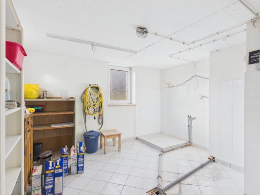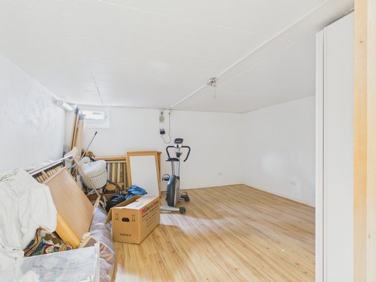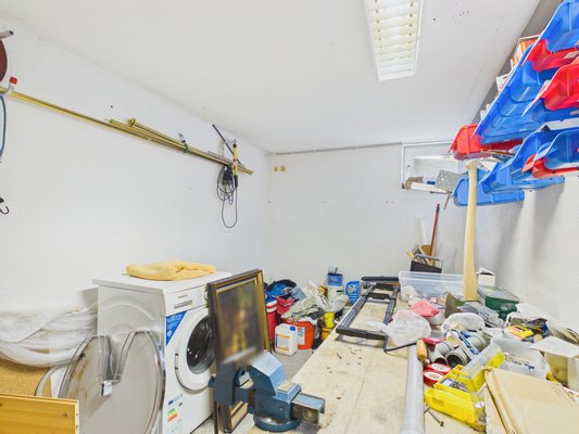 Im Untergeschoss stehen beiden Parteien ca. 80 m² Nutzfläche zur Verfügung: zwei separate Kellerabteile (10,34 m² und 28,5 m²), ein großzügiger Hobbyraum (19,72 m²), Heizraum (9,54 m²) und ein weiterer Kellerraum (12,58 m²). Die hellen, gut proportionierten Räume bieten je nach Genehmigungslage Potenzial zur Umnutzung als Homeoffice, Gästezimmer oder Fitnessraum und würden die nutzbare Gesamtfläche des Hauses erheblich steigern.