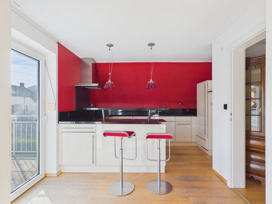 Die Küche im Obergeschoss ist das absolute Highlight der Ausstattung: Granitarbeitsflächen, hochwertige Einbaugeräte von Markenherstellern und ein tadellos gepflegter Zustand machen sie zur sofort nutzbaren Wohlfühlküche. Hier muss und will man nichts verändern – einziehen und genießen. Die Küche im Erdgeschoss hingegen ist funktional, sauber und vollständig nutzbar, entspricht jedoch nicht mehr dem heutigen Designstandard und bietet damit im Rahmen einer Modernisierung Raum für eine individuelle Neugestaltung.