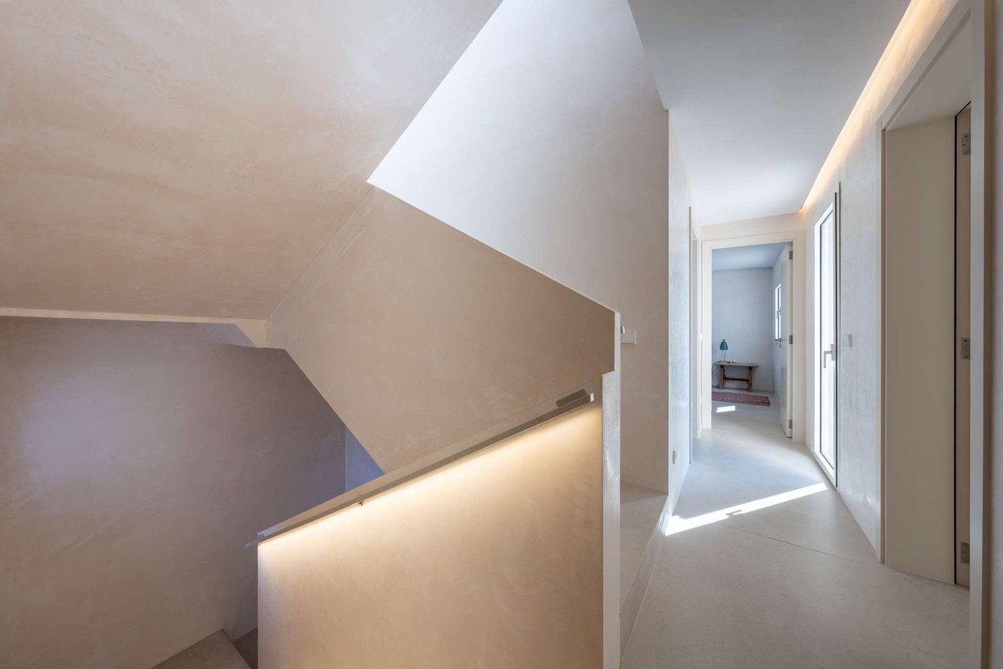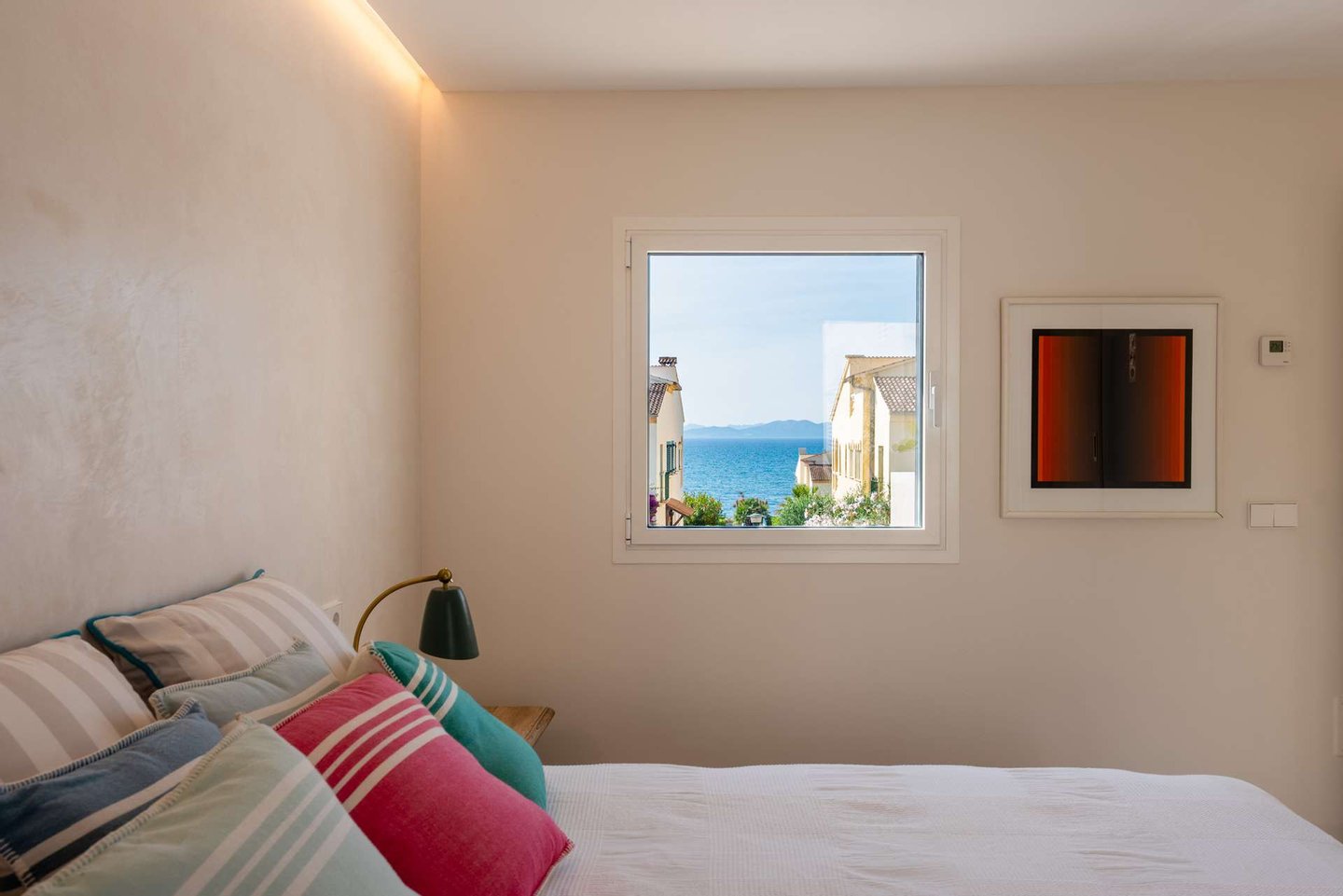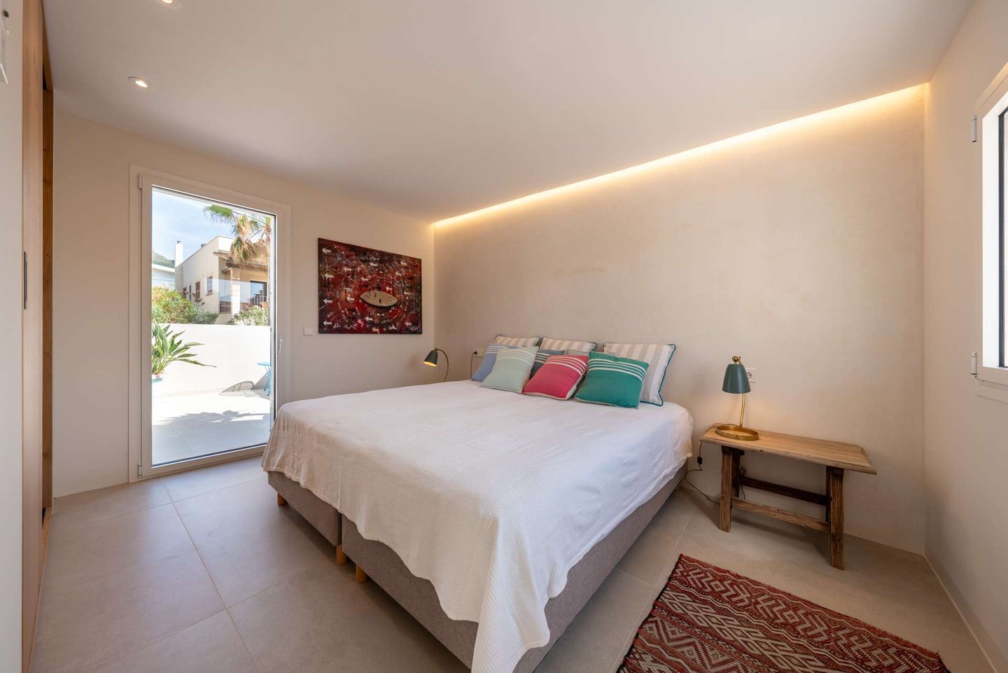 Die Dachterrasse bildet den höchsten Punkt des Hauses. Von hier öffnet sich ein weiter 360-Grad-Blick über die Landschaft. Die Sonnenuntergänge über der Bucht, die sanften Berge des Puig de Ferrutx im Hintergrund und das angrenzende Naturschutzgebiet verleihen diesem Ort eine besondere Atmosphäre.