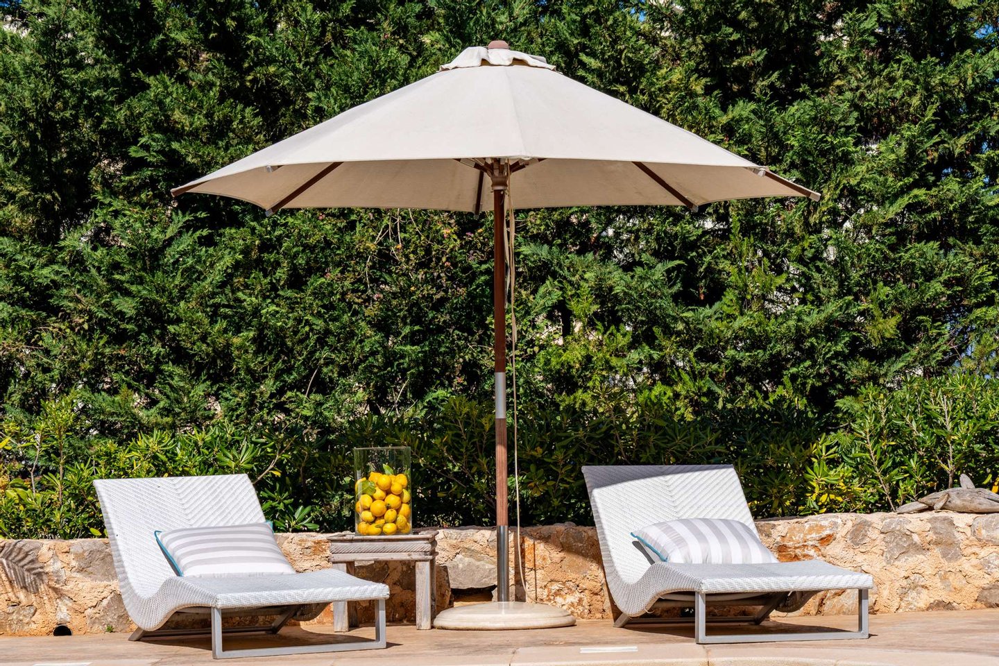 - Sonnenliegen und Terrassenbereiche