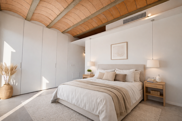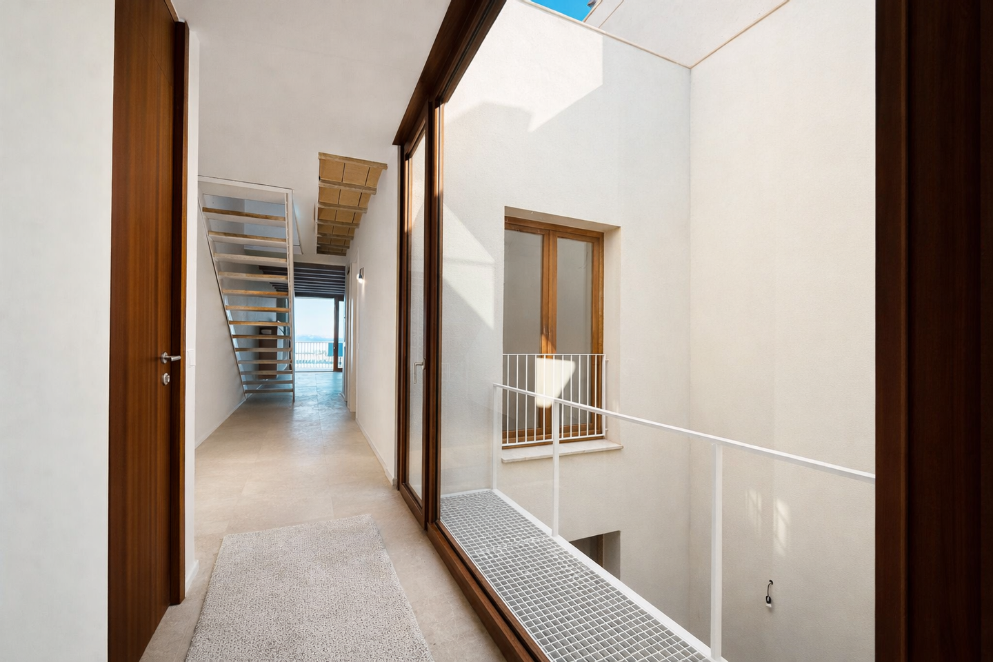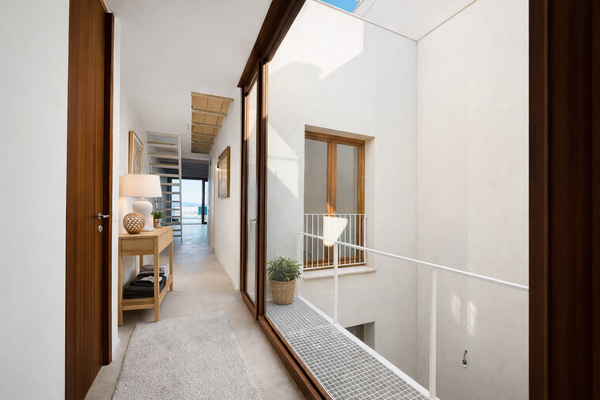 Dieses exklusive Penthouse befindet sich im ersten Obergeschoss eines hochwertigen Neubaus und erstreckt sich über zwei Ebenen. Eine elegante Innentreppe verbindet die Wohnräume mit der privaten Dachterrasse und schafft ein modernes Wohngefühl mit fließenden Übergängen zwischen Innen- und Außenbereich. Die Architektur kombiniert zeitgemäßes Design mit dezenten mallorquinischen Elementen.