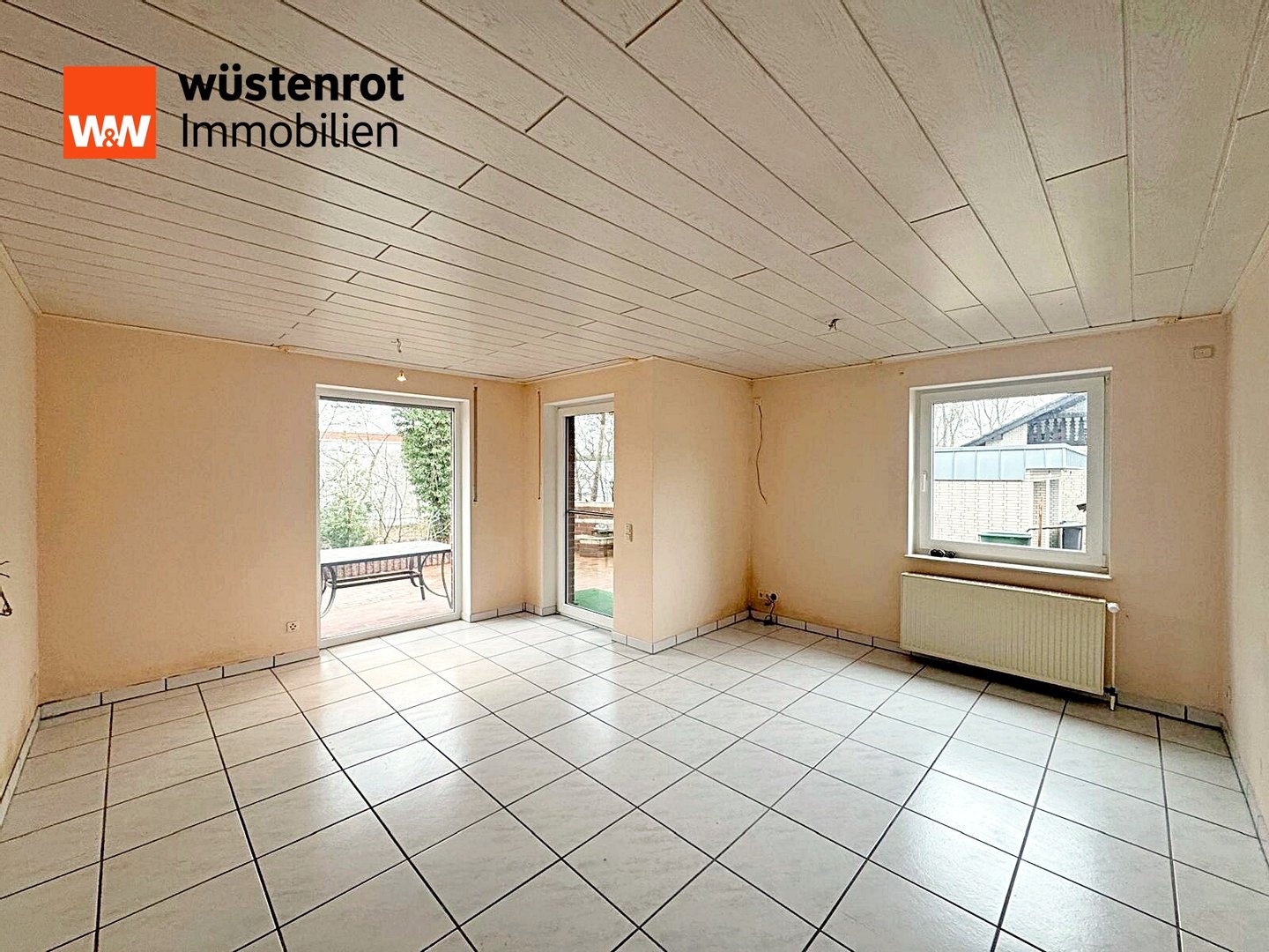 Der großzügige Wohnbereich bildet das Herzstück der Wohnung. Durch den eleganten Fliesenboden entsteht eine helle und zugleich stilvolle Atmosphäre mit einem luftigen Raumgefühl. Von hier aus gelangen Sie direkt auf die Terrasse, die über einen eigenen seitlichen Zugang neben dem Haus erreichbar ist. Die Süd-West-Ausrichtung sorgt von den Mittagsstunden bis in den Abend hinein für angenehme Sonnenstunden und schafft einen besonders einladenden Außenbereich. Ein gemauerter Grill ergänzt die Terrasse und bietet ideale Voraussetzungen für gesellige Abende im Freien. Das gepflegte Wohnumfeld sowie die ruhige Hausgemeinschaft unterstreichen den angenehmen Charakter dieser Immobilie.