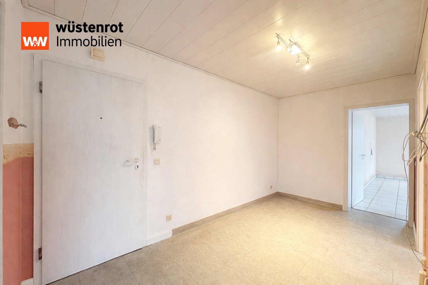 Im Flur wurde ein moderner Vinylboden verlegt, der sowohl optisch ansprechend als auch pflegeleicht ist. Ein praktischer Einbauschrank bietet zusätzlichen Stauraum und sorgt für Ordnung im Eingangsbereich. Das Tageslichtbad ist funktional