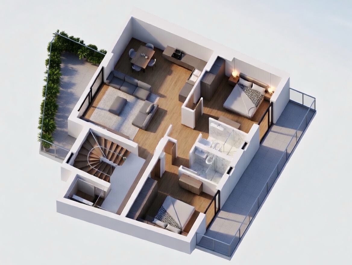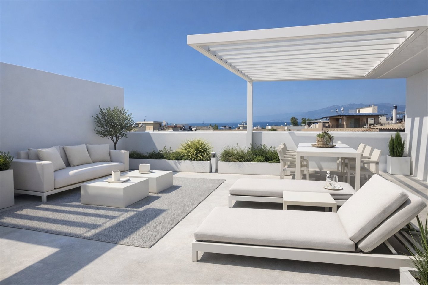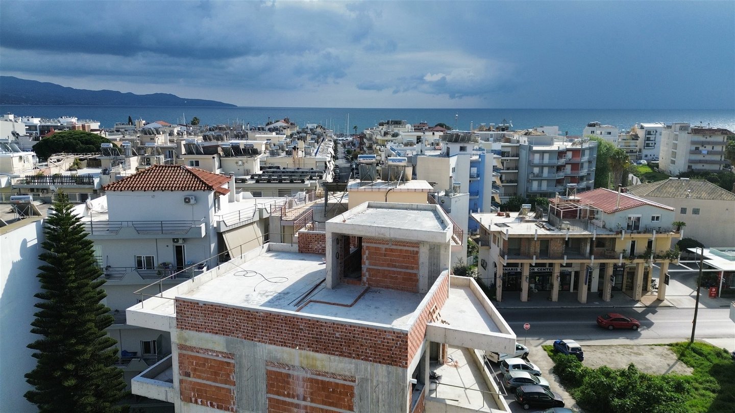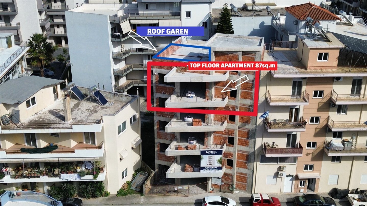 Zu verkaufen: Unter Bau befindliche Dachgeschoss-Wohnung im 4. Obergeschoss, 87 m², Roof Garden in Kalamata mit Meerblick – moderner Komfort an einzigartiger Lage.