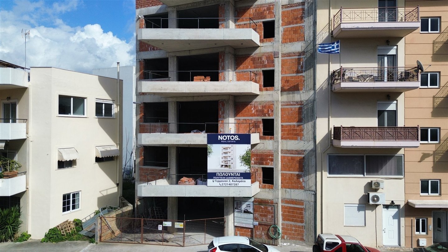 Im Bereich Nisiaki in Kalamata, in der Nähe von Tennisplätzen, wird im vierten Stock eines noch zu bauenden Mehrfamilienhauses eine helle und durchlüftete 87 m²-Wohnung mit offener Wohn- und Küchenzone, 2 Schlafzimmern, 2 Badezimmern, 2 Balkonen (Osten und Westen) und Roof Garden mit Meerblick zum Verkauf angeboten.