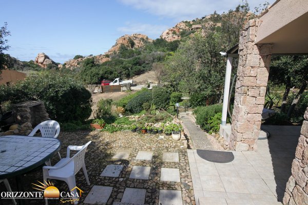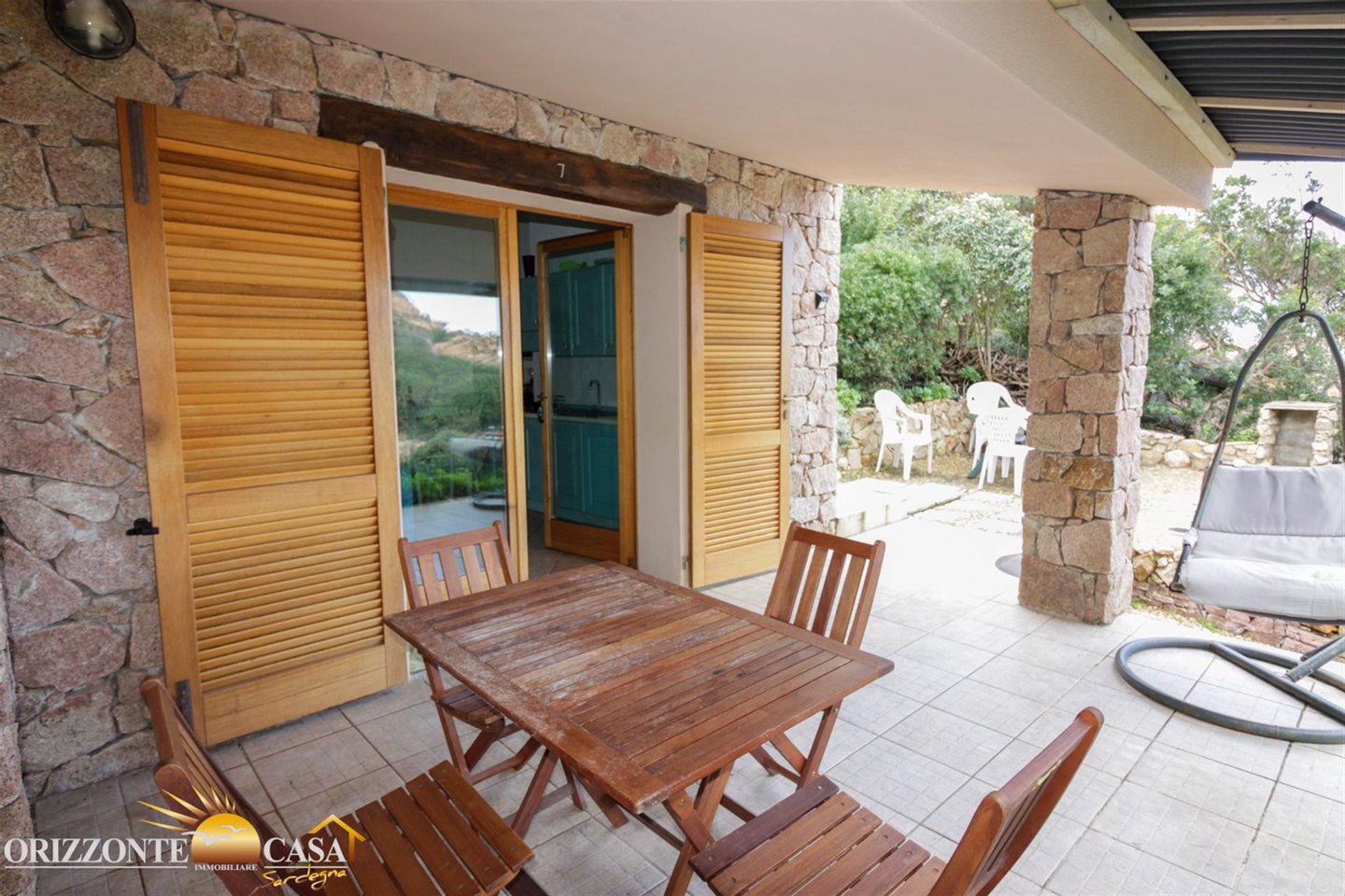 Außen bieten sowohl die Veranda als auch der Garten einen Einblick in die Landschaft und die umliegenden Felsen der Gallura. Die Immobilie umfasst auch einen bequemen privaten Stellplatz, ideal für Fahrzeugbesitzer.