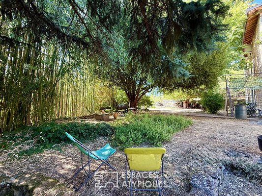 Auch der Außenbereich überzeugt mit einem grünen Garten, wahrhaftigem Naturraum zumAbschirmen vor neugierigen Blicken. Die Nebengebäude, darunter ein Atelier mit Mezzanin und zwei Kellern, von denen einer gewölbt ist, fügen eine praktische und historische Dimension hinzu. Die Lage bietet unmittelbare Nähe zu lokalen Annehmlichkeiten, wobei gleichzeitig eine kostbare Privatsphäre gewahrt bleibt.