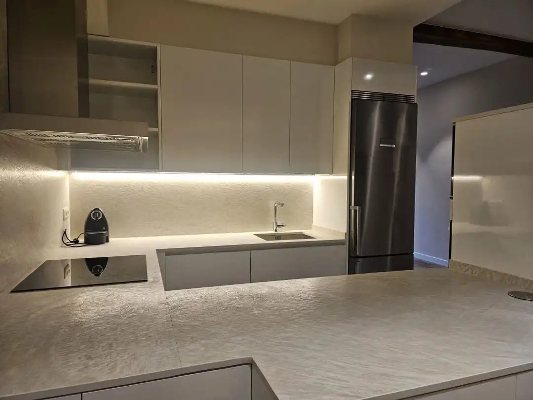 An der Avenida de la Libertad, der Hauptverkehrsader der Stadt mit außergewöhnlicher Straßenbreite und nur wenige Schritte vom ikonischen Playa de la Concha entfernt, verbindet diese spektakuläre 80 m² große Außenwohnung Komfort, Licht und modernes Design.