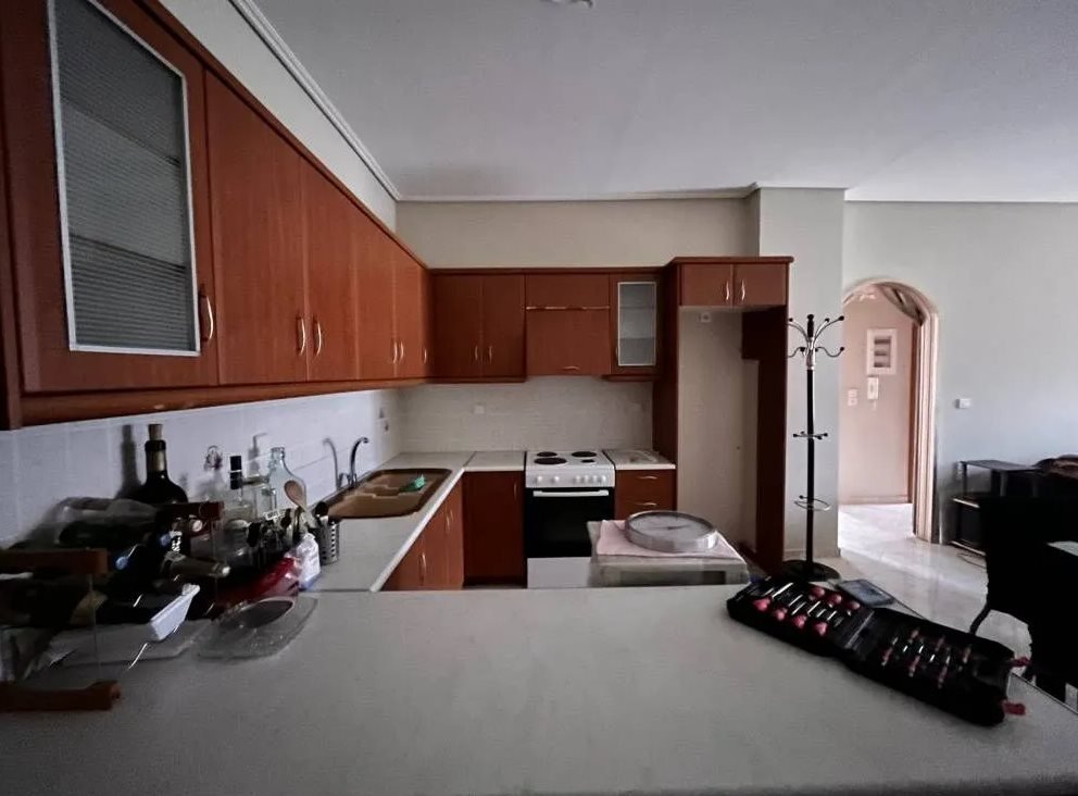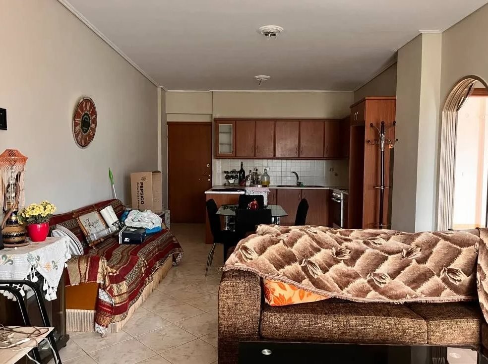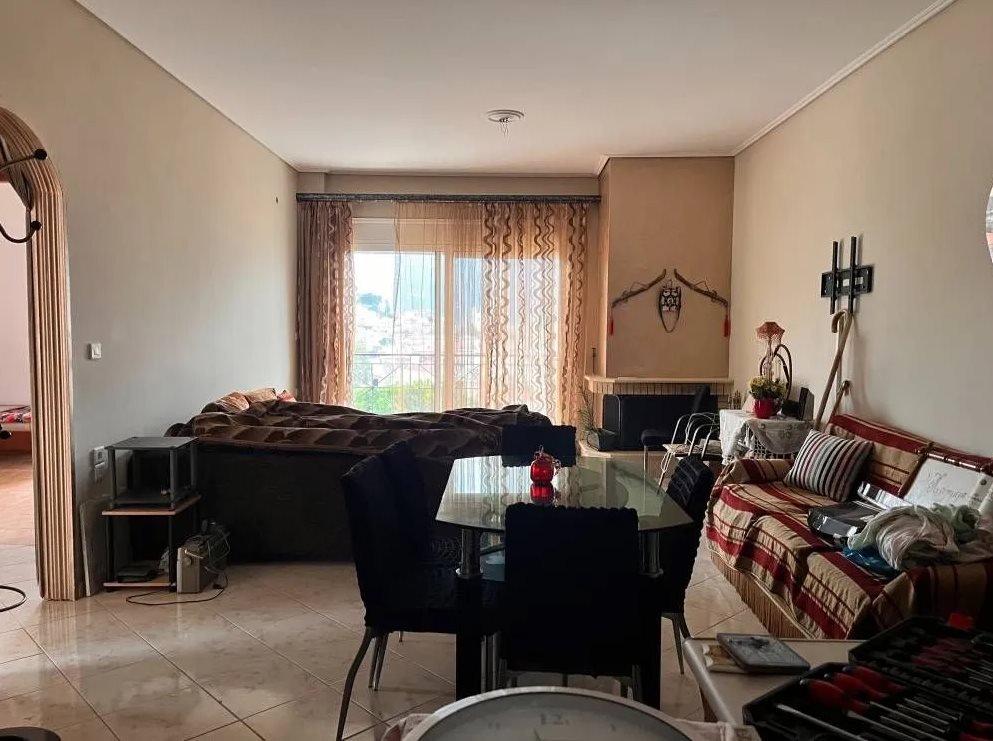 80 m² helles und geräumiges Apartment im 3. Stock eines Mehrfamilienhauses, Baujahr 2010, in der Nähe des Zentrums von Kalamata. Ostliche Ausrichtung sorgt für natürliches Licht den ganzen Tag und einen Panoramaausblick über die Stadt und den