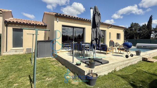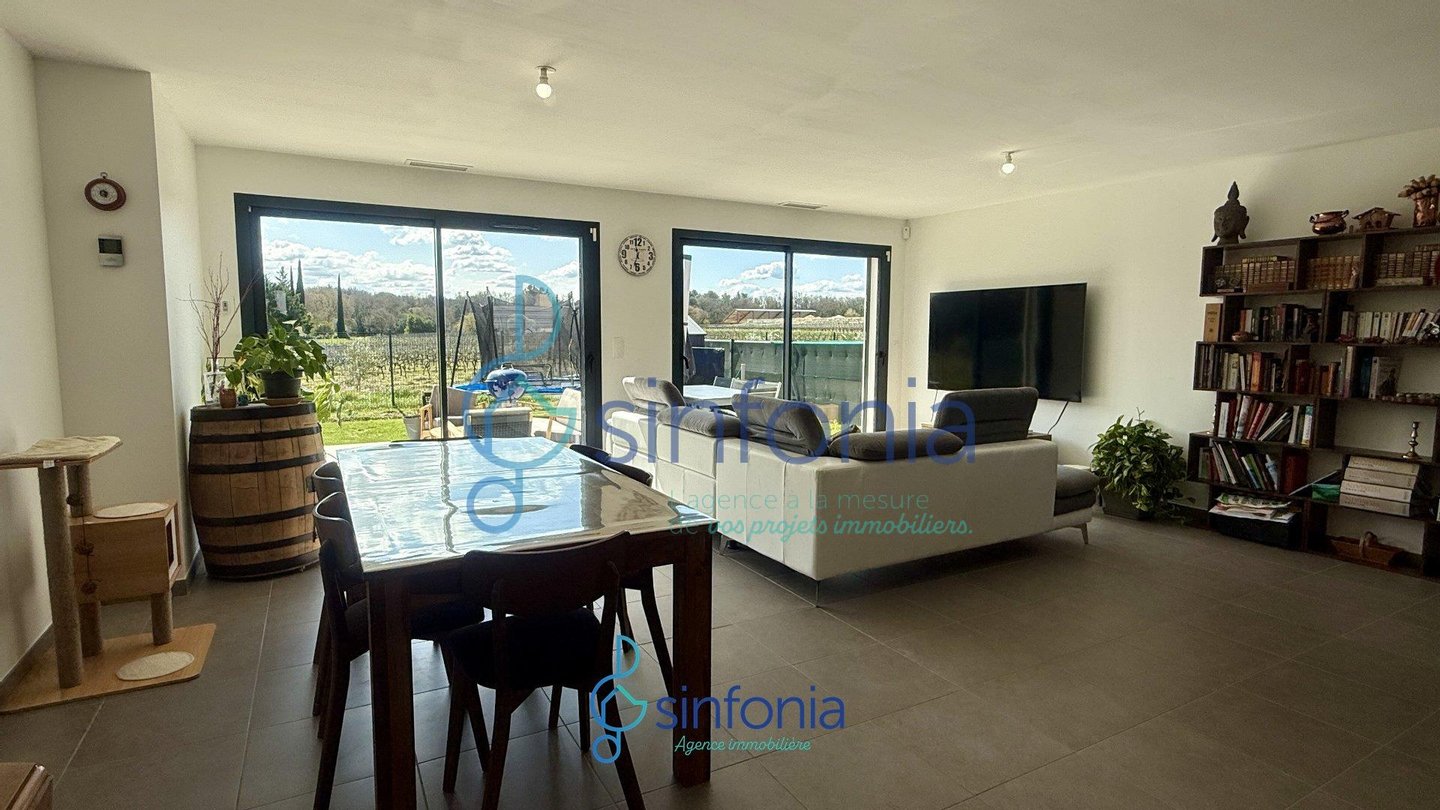 Haus 4 km von Uzès entfernt, ebenerdig, 110 m2, 4 Schlafzimmer, beheizter Pool, Blick auf die Weinbe