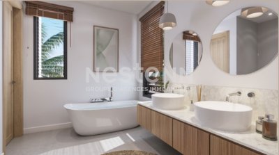 Diese luxuriöse Erdgeschosswohnung mit 227 Quadratmetern und Zugang zu einem Teil des Gartens bietet eine Wohnfläche von knapp 45 Quadratmetern, bestehend aus einem Wohn- und Esszimmer, einer voll ausgestatteten offenen Küche mit europäischen Geräten und drei klimatisierten Schlafzimmern mit eigenem Bad für optimalen Komfort das ganze Jahr über.