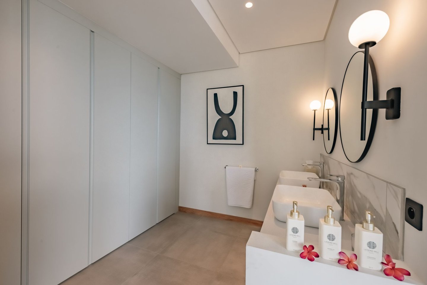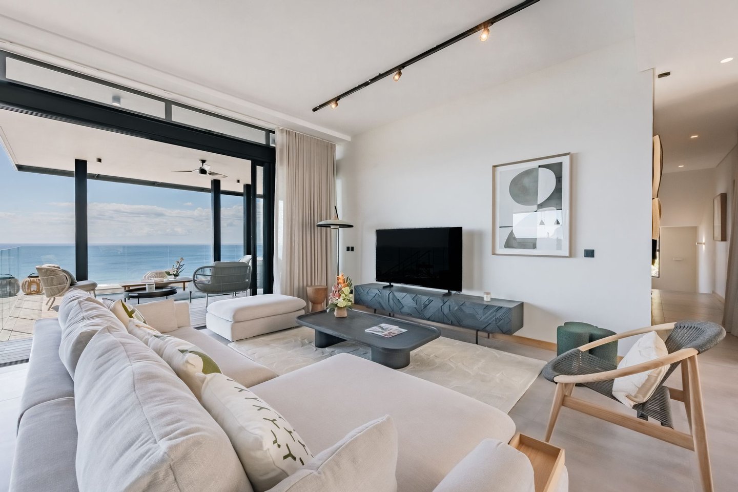 Die weitläufigen Wohnbereiche öffnen sich zu großzügigen Terrassen und einem Infinity-Pool mit spektakulärem Meerblick. Architektur und Raumgestaltung wurden so entwickelt, dass sie viel natürliches Licht einfangen und ein nahtloses Zusammenspiel zwischen Innen- und Außenbereich schaffen.