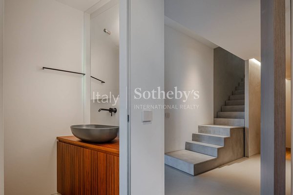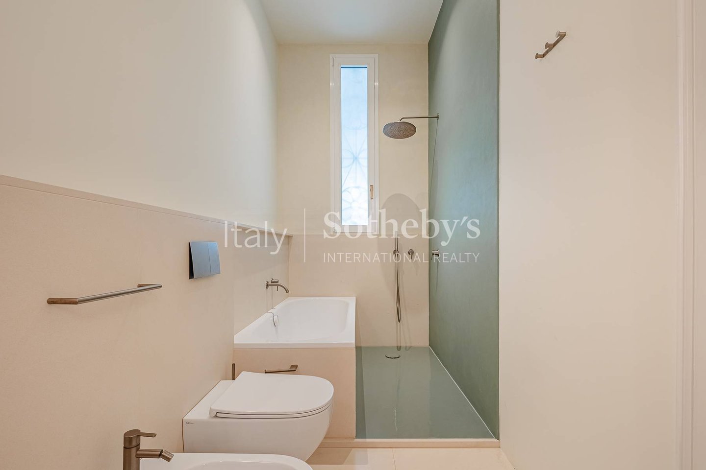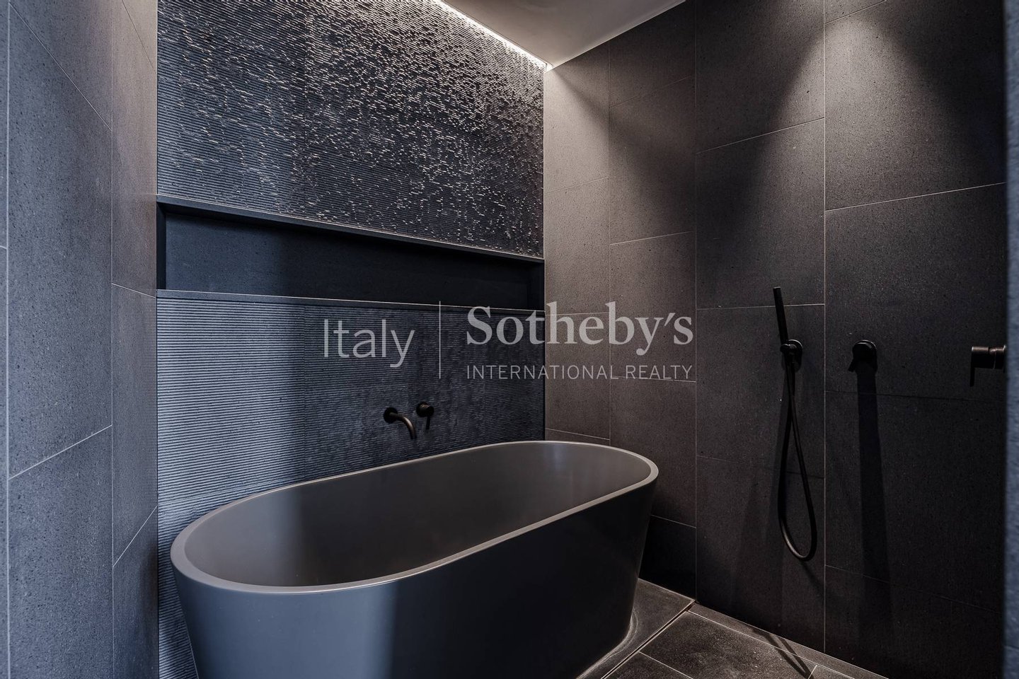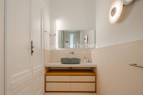 The apartment has been finished with meticulous attention to detail, featuring bespoke furniture and lighting, including models by Occhio and Flos. The kitchen is equipped with Bora cooktops and two wine cellars. The dining table, crafted from a single slab of green marble, adds a distinctive element of elegance and design, while bathrooms by Nic Design and refined microcement finishes further enhance the property's sophisticated character.