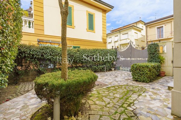 The property has a total surface area of approximately 432 sqm distributed over three floors, plus a 10 sqm livable terrace, balconies, an 18 sqm panoramic terrace in the tower, a basement, and a garden of approximately 35 sqm with private parking. The property is located in a prestigious area of Viareggio, just a short distance from the beach, the seafront promenade, the town center, and the Pineta di Ponente.