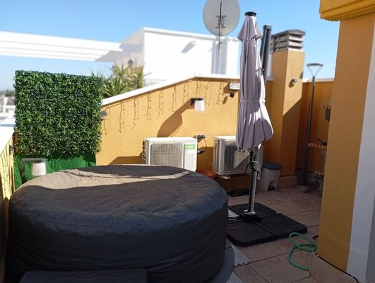 Wir freuen uns sehr, dieses wunderschön ausgestattete, moderne Stadthaus in der begehrten, privat bewachten Wohnanlage "Residencial Villa Sol" auf den Markt zu bringen. Die Immobilie umfasst 2 Doppelzimmer, einen Wohn-/Essbereich und eine offene Küche. Im Untergeschoss befindet sich ein zweiter, 30 m² großer Empfangsraum, der dank einer geschickten Gestaltung von natürlichem Licht profitiert. Derzeit wird er als Wohnbereich genutzt, könnte aber problemlos für verschiedene Zwecke umgestaltet werden. Im ersten Stock befindet sich eine begehbare Dusche sowie ein separates WC am Fuß der Treppe. Diese reizvolle Immobilie verfügt zudem über einen eigenen Solariumbereich mit eingebautem Grill und Whirlpool. Obwohl das Haus bereits modern ist, profitiert es von zahlreichen Verbesserungen, darunter: neue Küche und Badezimmer, eine Klimaanlage im Erdgeschoss sowie eine Kanalklimaanlage im ersten Stock. Die Wohnanlage bietet zudem die exklusive Nutzung des wunderschönen Gemeinschaftspools und der Gartenanlagen. Alle Annehmlichkeiten und die Autobahn sind bequem zu erreichen.