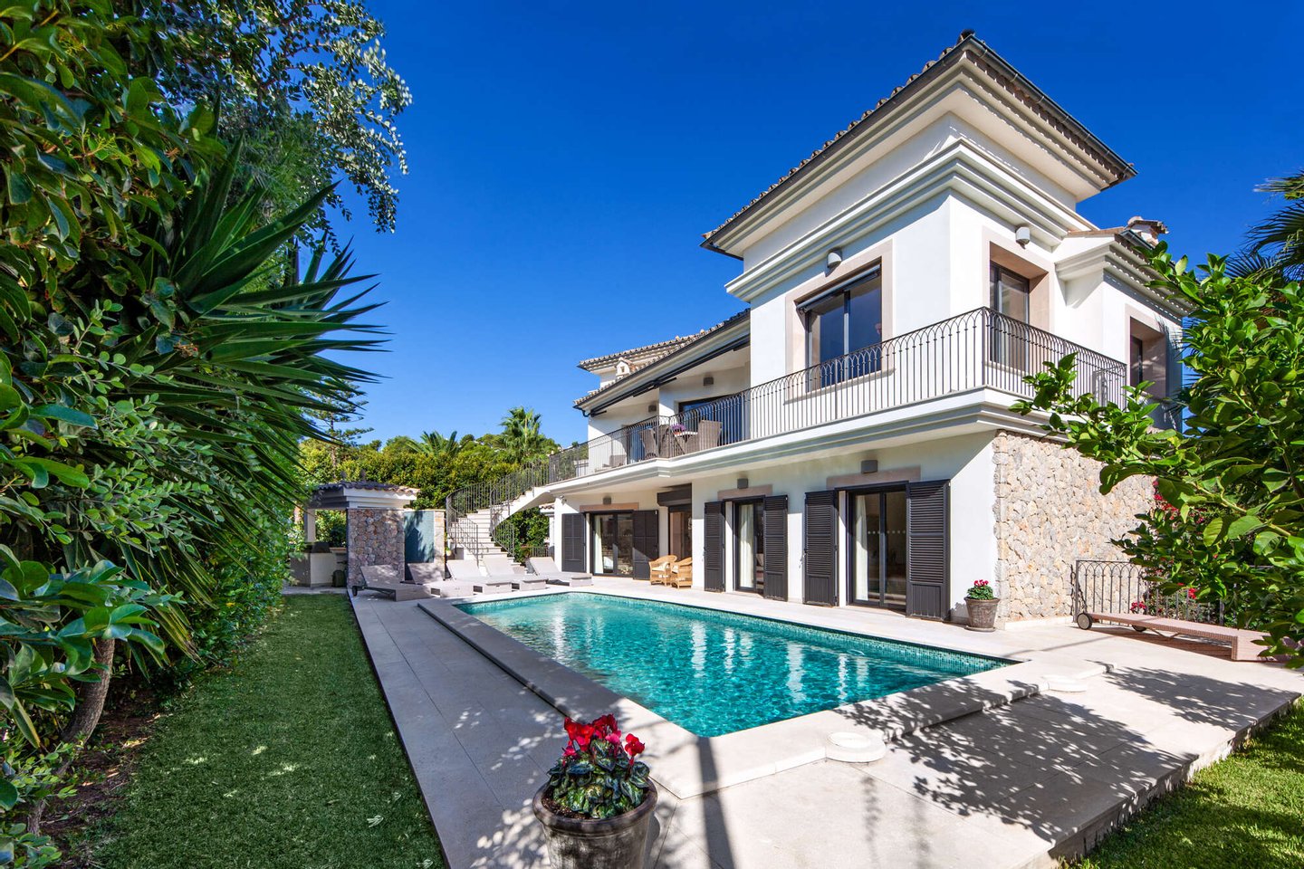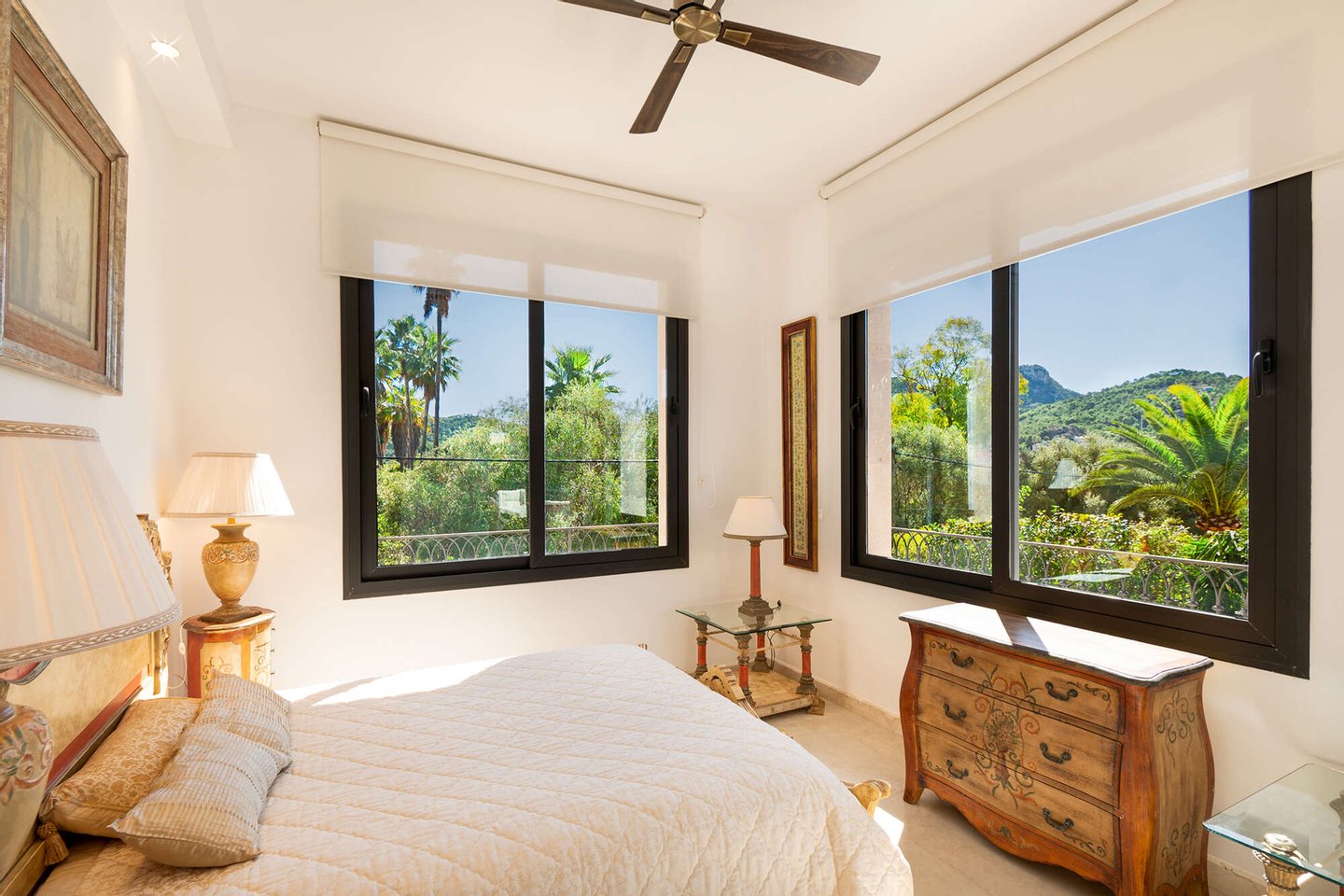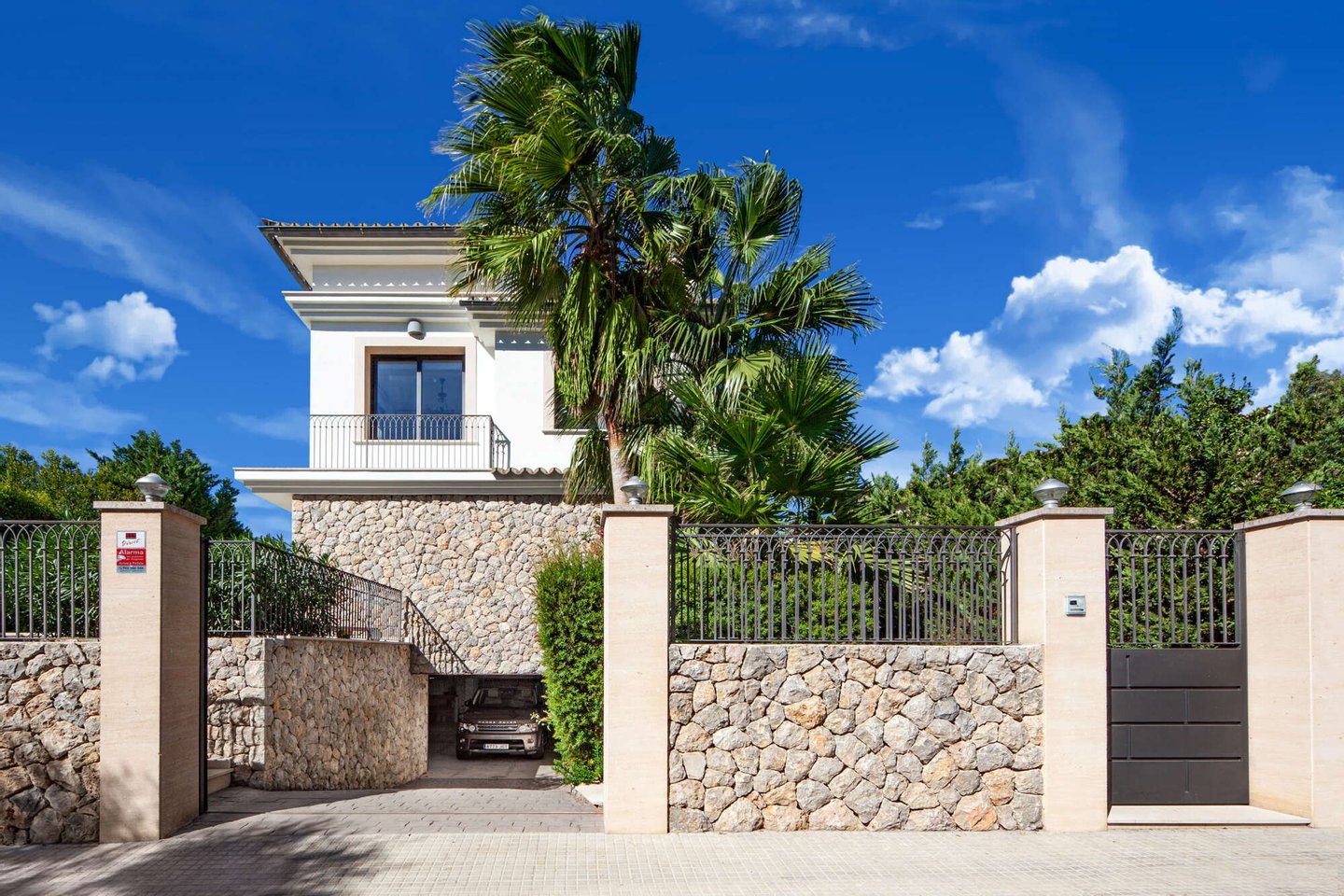 Auf einem großzügigen 650 m² großen Grundstück erstreckt sich eine Wohnfläche von 380 m², die zeitlose Eleganz ausstrahlt. Lichtdurchflutete Räume schaffen eine warme, einladende Atmosphäre, während die offenen Wohnbereiche fließend ineinander übergehen und ein Gefühl von Weite vermitteln. Große Fenster rahmen beeindruckende Ausblicke auf die umliegende mallorquinische Landschaft. Vier geschmackvoll gestaltete Schlafzimmer und drei Badezimmer bieten höchsten Komfort und Privatsphäre.