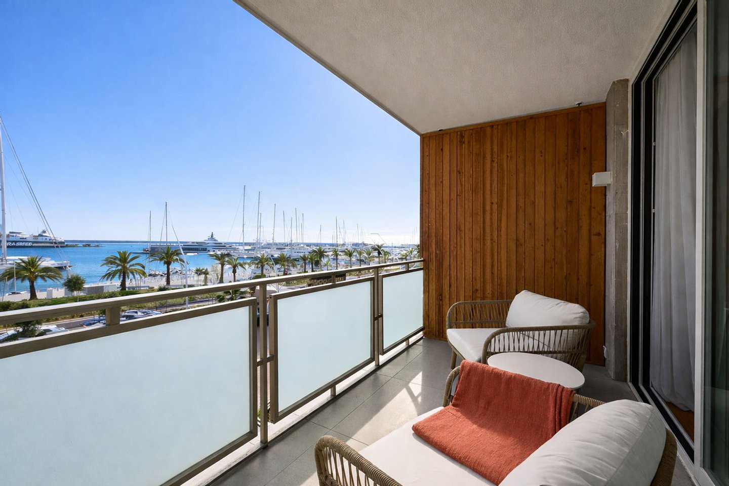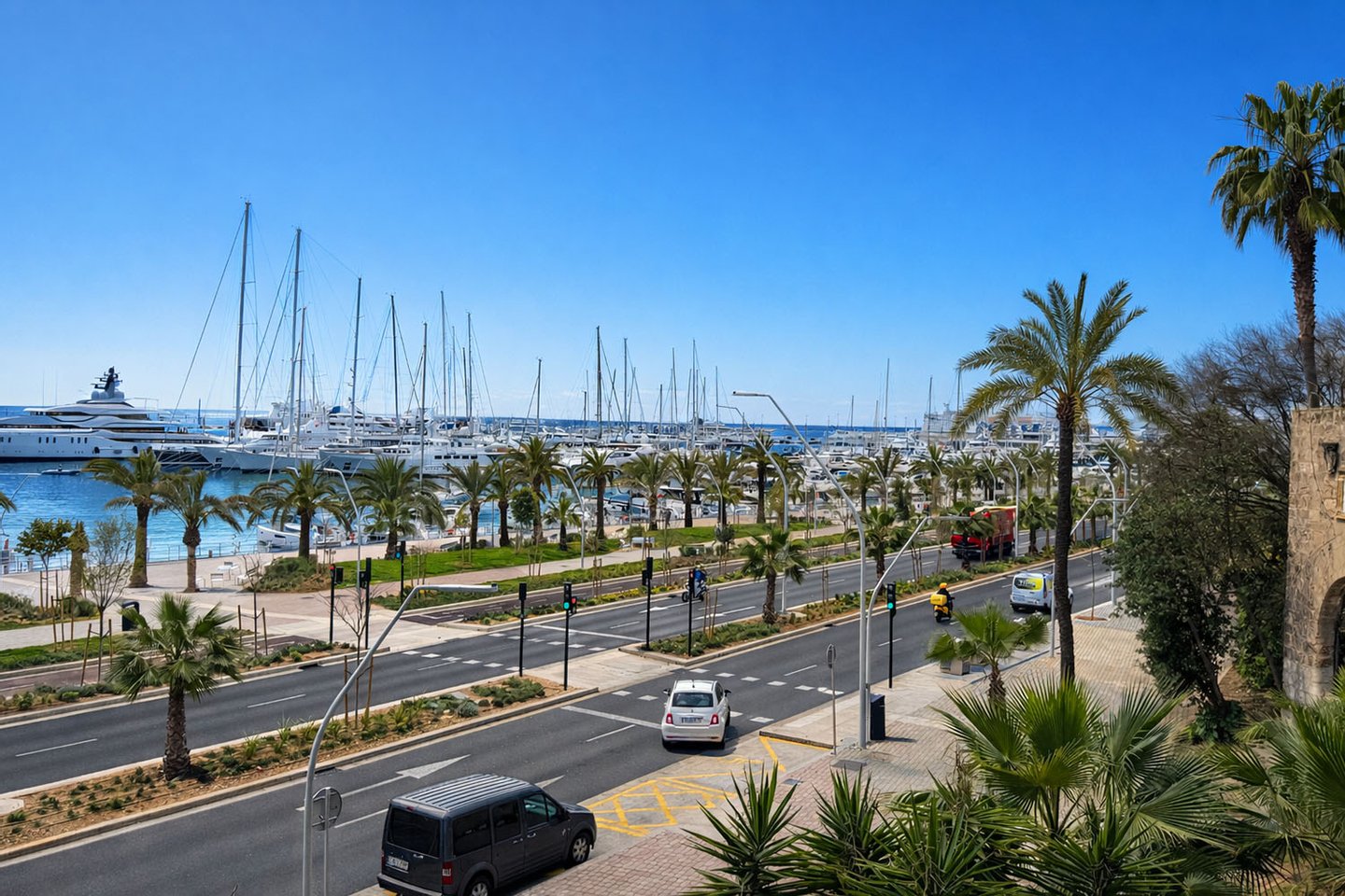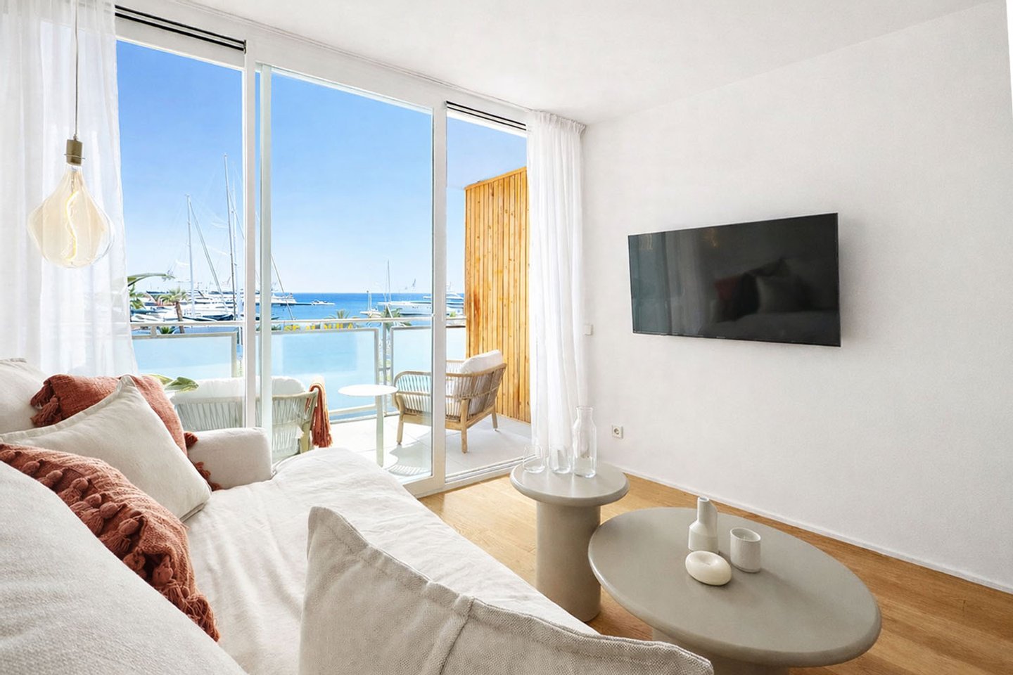Diese stilvolle Wohnung am Paseo Marítimo wurde umfassend kernsaniert und präsentiert sich als Erstbezug in moderner, hochwertiger Ausführung. Sie befindet sich in der 2. Etage eines gepflegten Wohnhauses mit Aufzug und liegt in direkter Wasserlage mit beeindruckendem Blick auf den Yachthafen. Die Immobilie verbindet mediterranes Lebensgefühl mit zeitgemäßem Design. Großzügige Fensterflächen lassen viel Tageslicht in die Räume und schaffen gemeinsam mit der offenen Gestaltung eine helle, freundliche Wohnatmosphäre in einer der attraktivsten Lagen der Promenade.