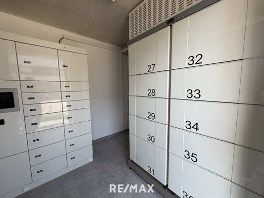 Das Wohnhaus bietet außerdem praktische Gemeinschaftseinrichtungen, darunter einen Fahrradraum sowie einen Paketraum mit eigenen Paketfächern, der eine komfortable und sichere Zustellung von Paketen ermöglicht.