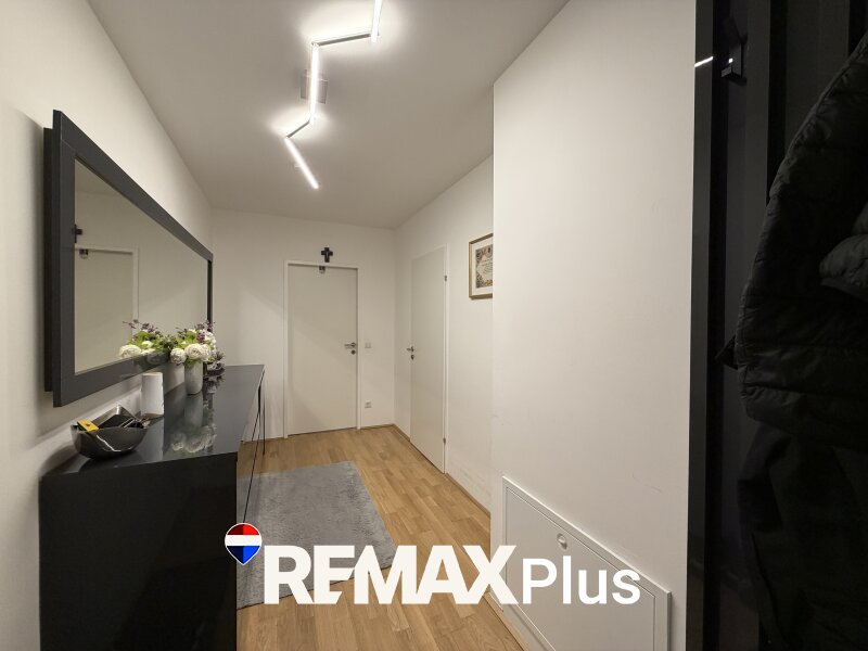 Beim Betreten der Wohnung gelangen Sie in einen einladenden Vorraum, der einen angenehmen ersten Eindruck vermittelt und ausreichend Platz für Garderobe bietet. Von hier aus erreichen Sie den Wohnbereich mit einer voll ausgestattete Küche, die funktional gestaltet ist und genügend Platz zum Kochen und Arbeiten bietet.