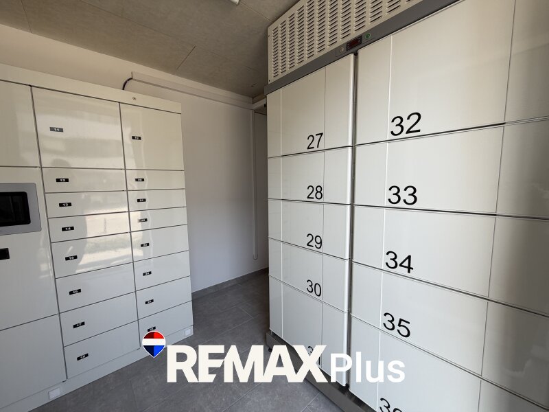 Das Wohnhaus bietet außerdem praktische Gemeinschaftseinrichtungen, darunter einen Fahrradraum sowie einen Paketraum mit eigenen Paketfächern, der eine komfortable und sichere Zustellung von Paketen ermöglicht.