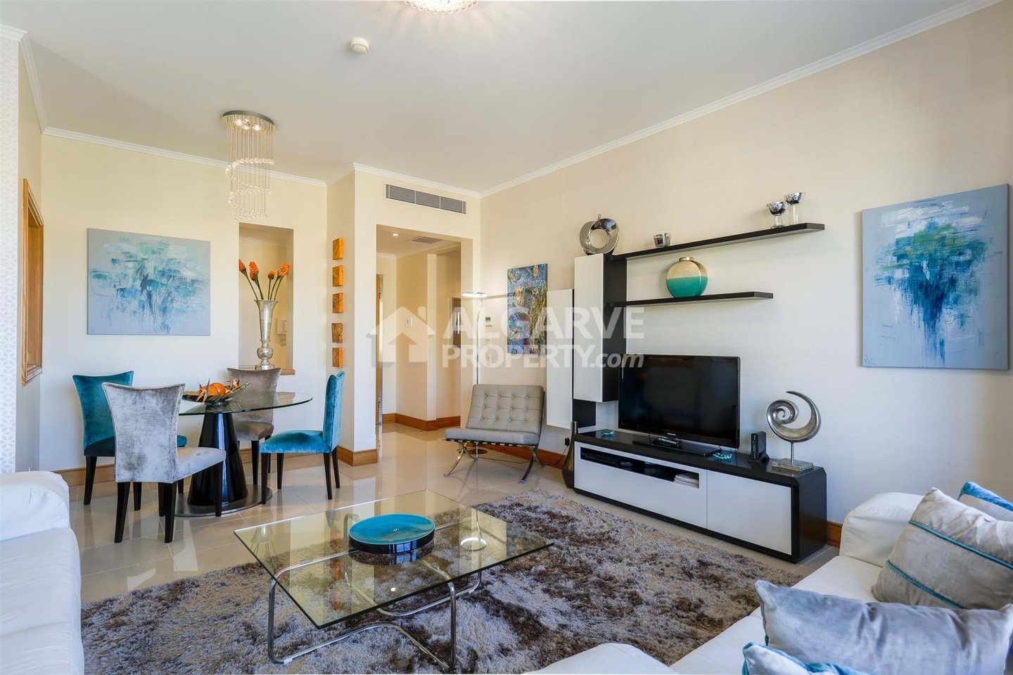 Eine Luxusswohnung mit 2 Schlafzimmern, gelegen zwischen den begehrtesten Orten von Vilamoura. Die Wohnung kombiniert Komfort und Luxus, mit einem großzügigen offenen Wohn- und Essbereich, der nahtlos zu einer privaten Terrasse übergeht – perfekt zum