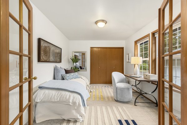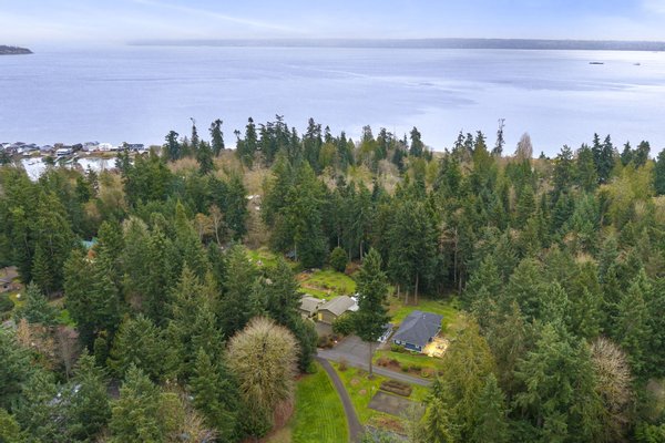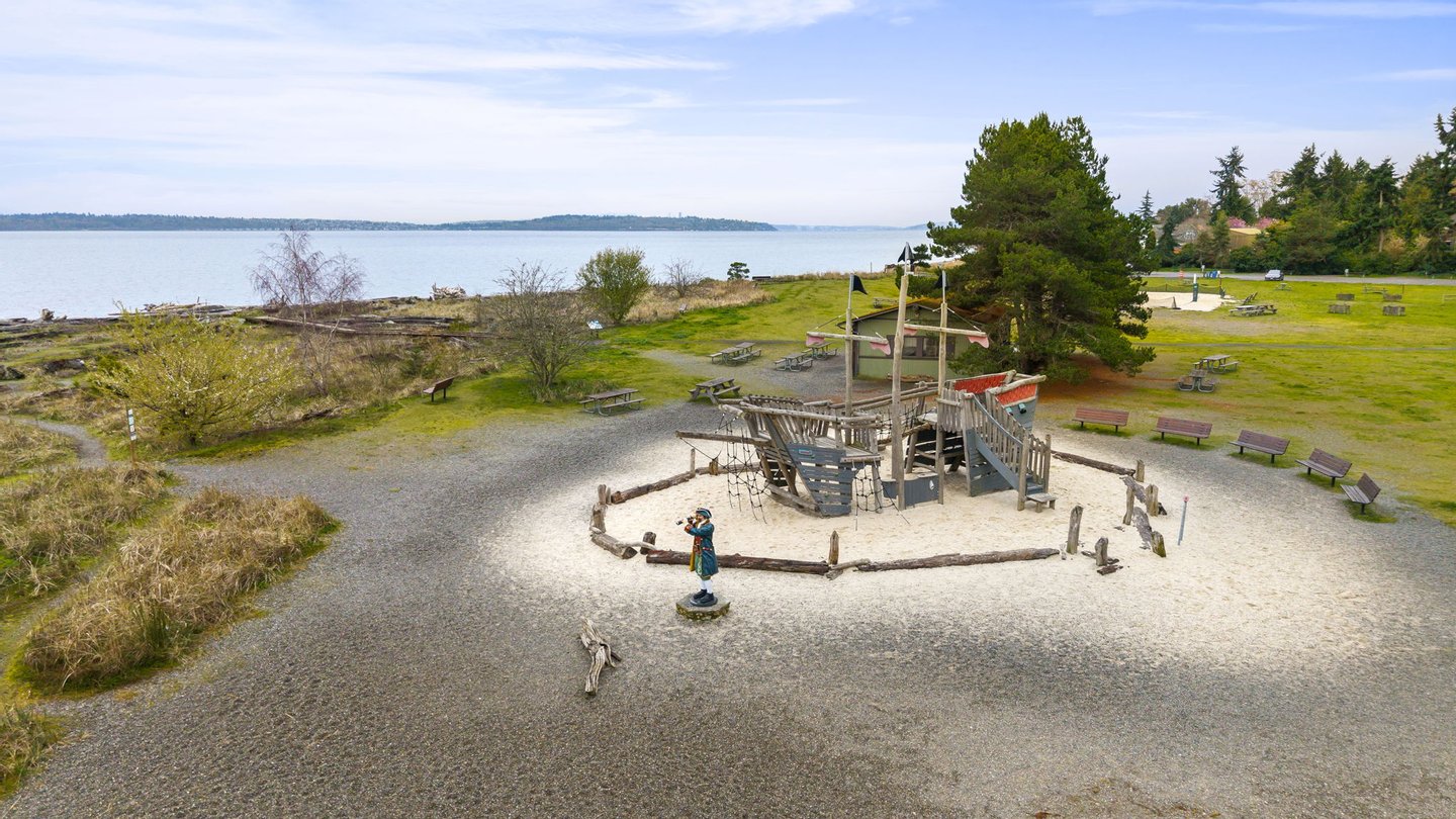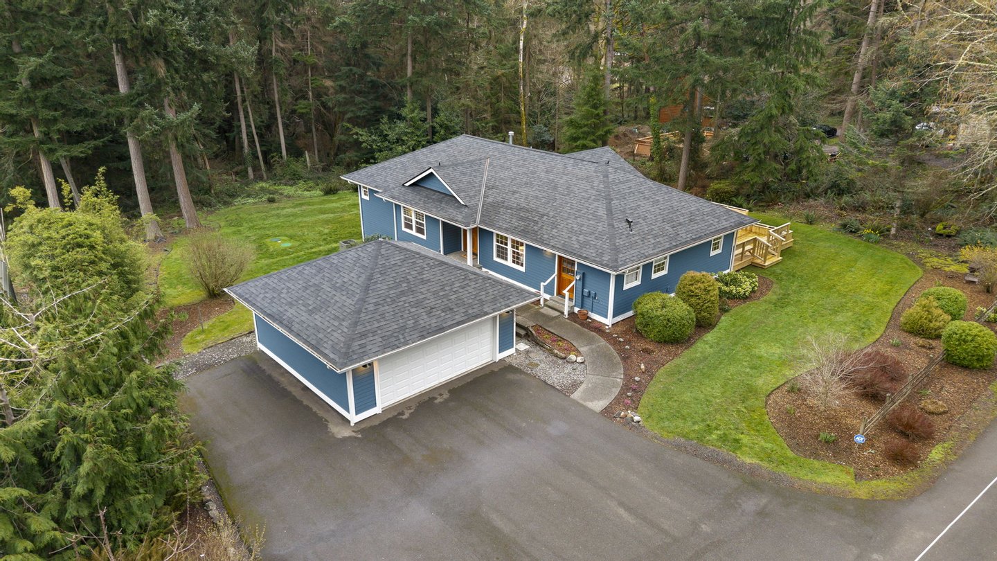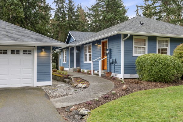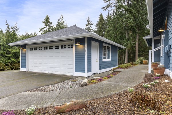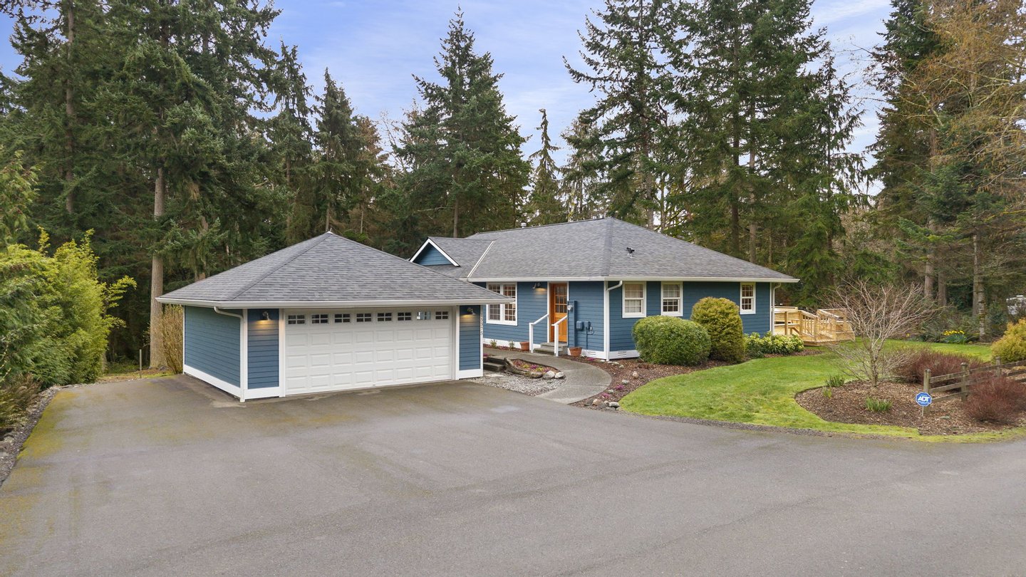Three bedrooms offer flexibility for a variety of lifestyles, including one with French doors that works beautifully as a home office. Additional highlights include a large laundry room with storage, a detached two-car garage, RV or boat parking, and a partially unfinished lower level with its own entrance offering future potential. Set among mature trees with park access just across the street, this property offers a rare opportunity to enjoy space, privacy, and the natural beauty that defines Bainbridge Island living.