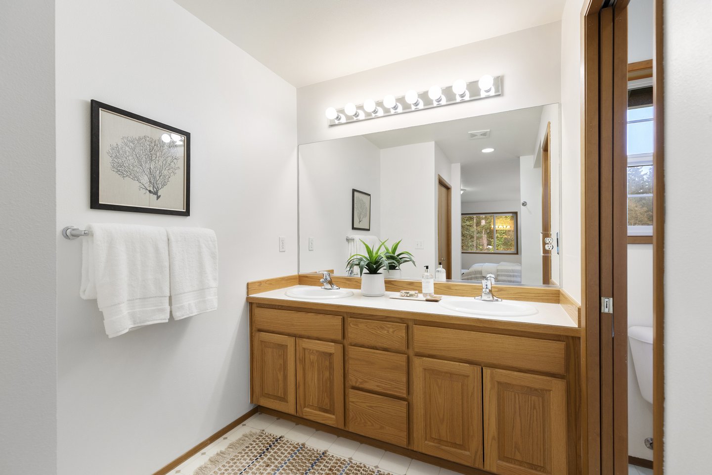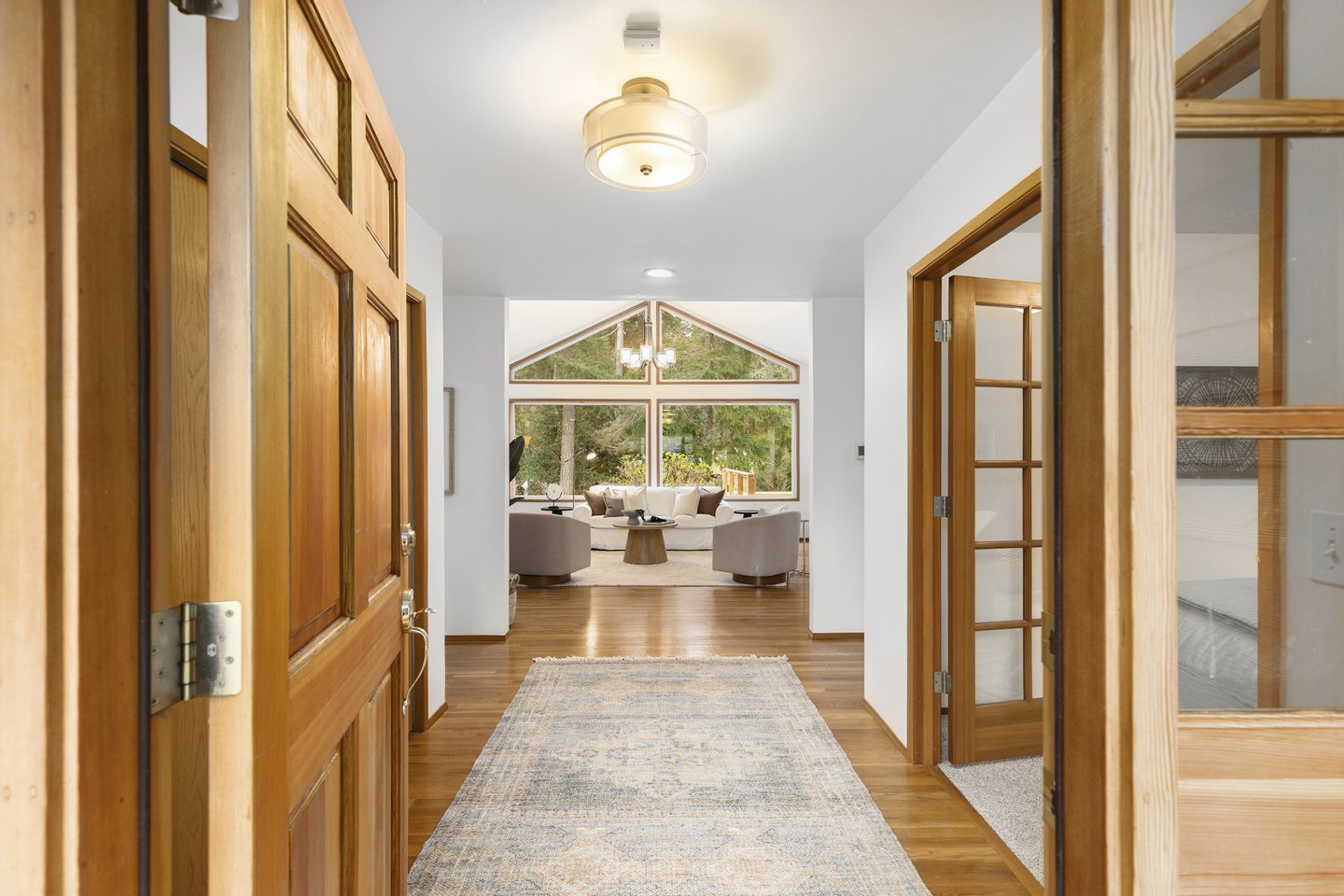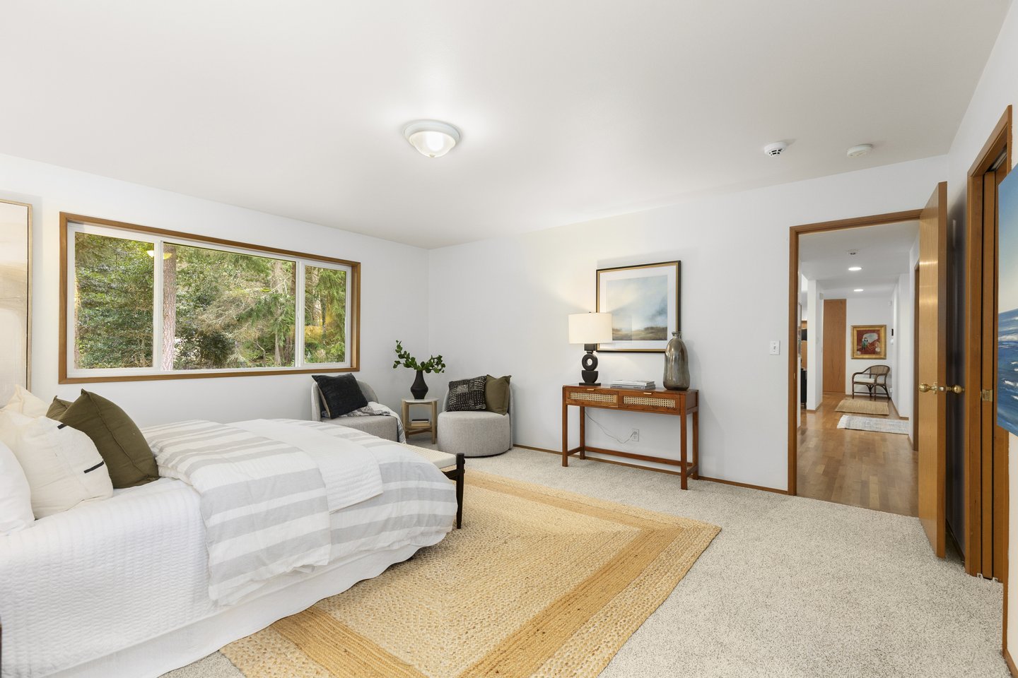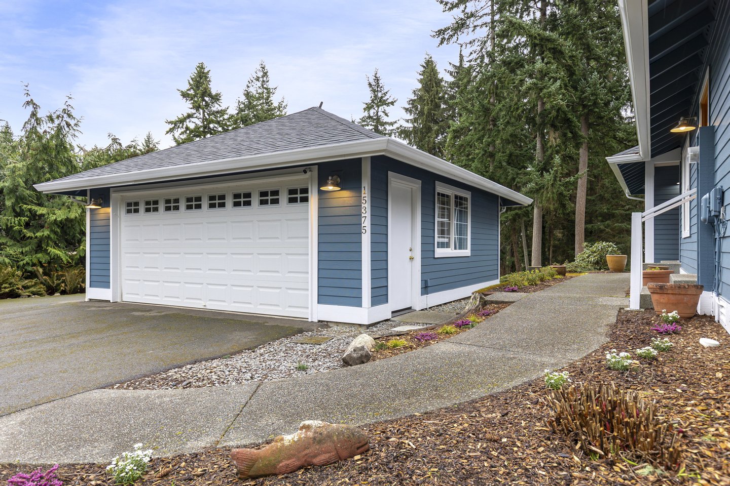 Three bedrooms offer flexibility for a variety of lifestyles, including one with French doors that works beautifully as a home office. Additional highlights include a large laundry room with storage, a detached two-car garage, RV or boat parking, and a partially unfinished lower level with its own entrance offering future potential. Set among mature trees with park access just across the street, this property offers a rare opportunity to enjoy space, privacy, and the natural beauty that defines Bainbridge Island living.