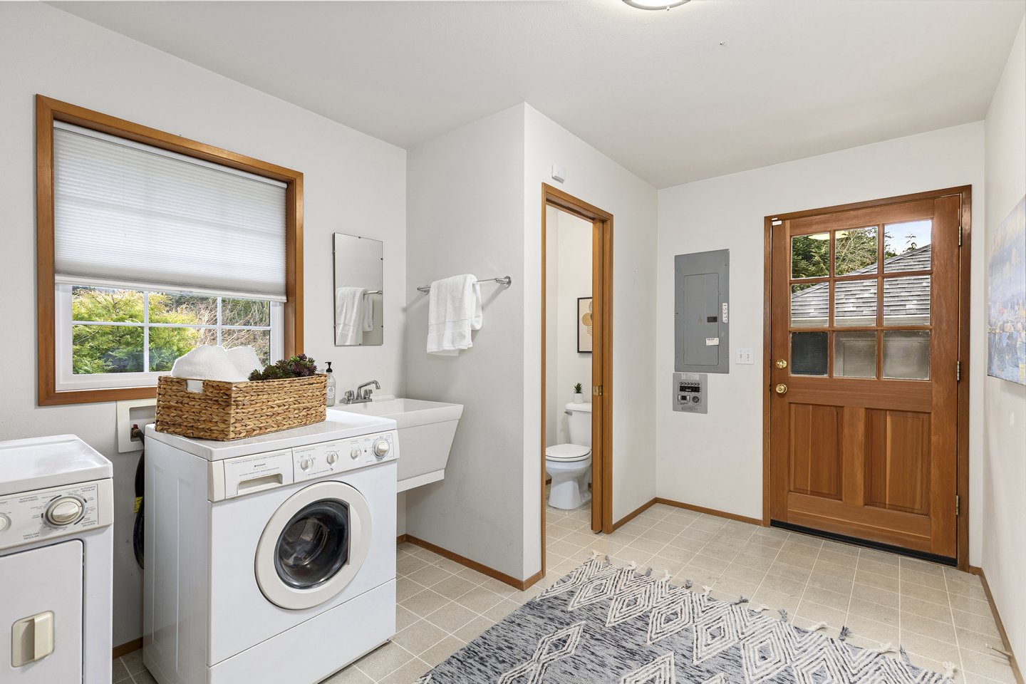 - Large laundry room with storage