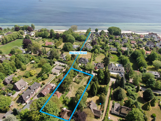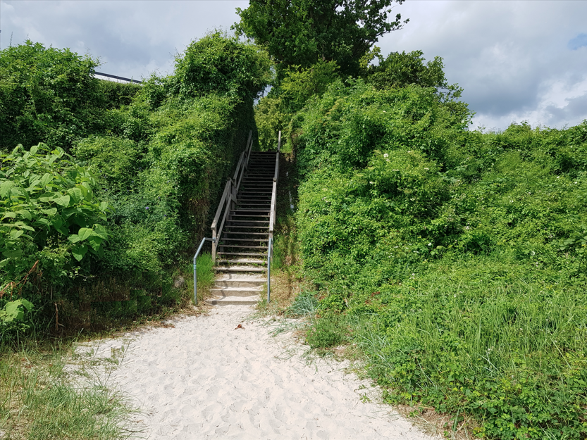 Gegenüber von dem Grundstück führt ein Fußweg (siehe Fotos) direkt zum Steilufer. Dort befindet sich eine Treppe, über die man den herrlichen, naturbelassenen Sandstrand erreicht.