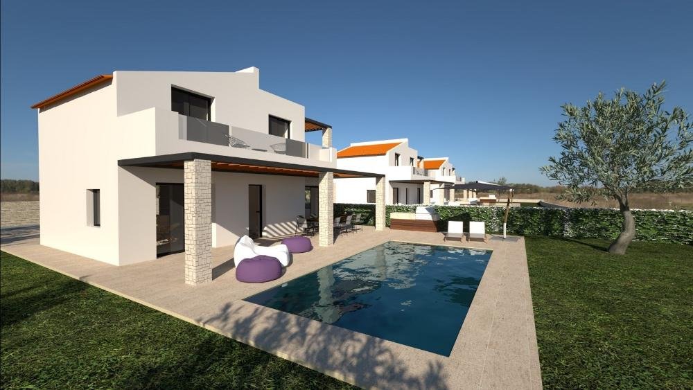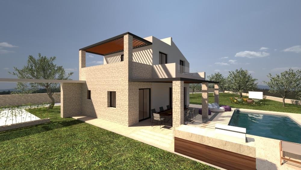 Die Residenz erstreckt sich über zwei Etagen und verfügt über drei Schlafzimmer und zwei Badezimmer. Im Erdgeschoss befinden sich ein offener Wohn- und Essbereich mit voll ausgestatteter Küche, ein Schlafzimmer und ein Badezimmer. Die obere Etage bietet zwei weitere Schlafzimmer, ein zweites Badezimmer und einen Abstellraum. Der Außenbereich umfasst einen privaten Swimmingpool und einen von Olivenbäumen umgebenen Garten, der ein entspannendes mediterranes Ambiente schafft. Zwei geräumige Balkone bieten einen herrlichen Meerblick und laden zum Verweilen ein.