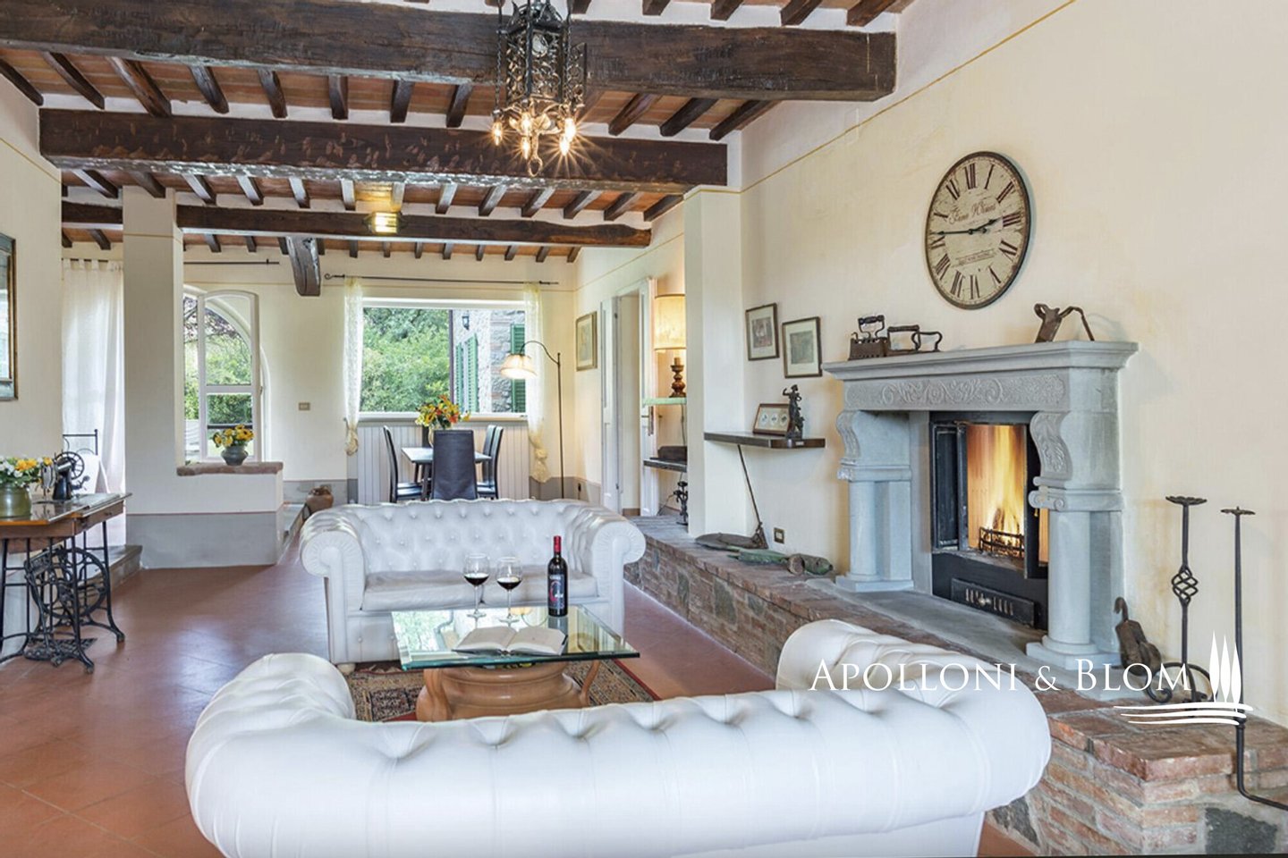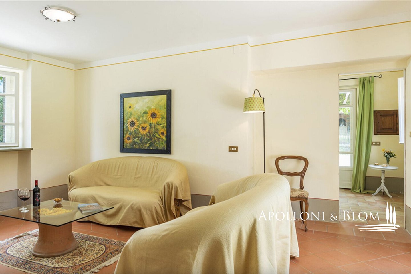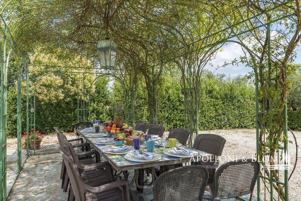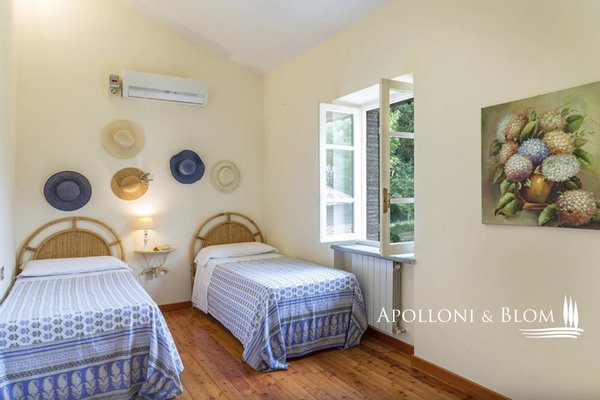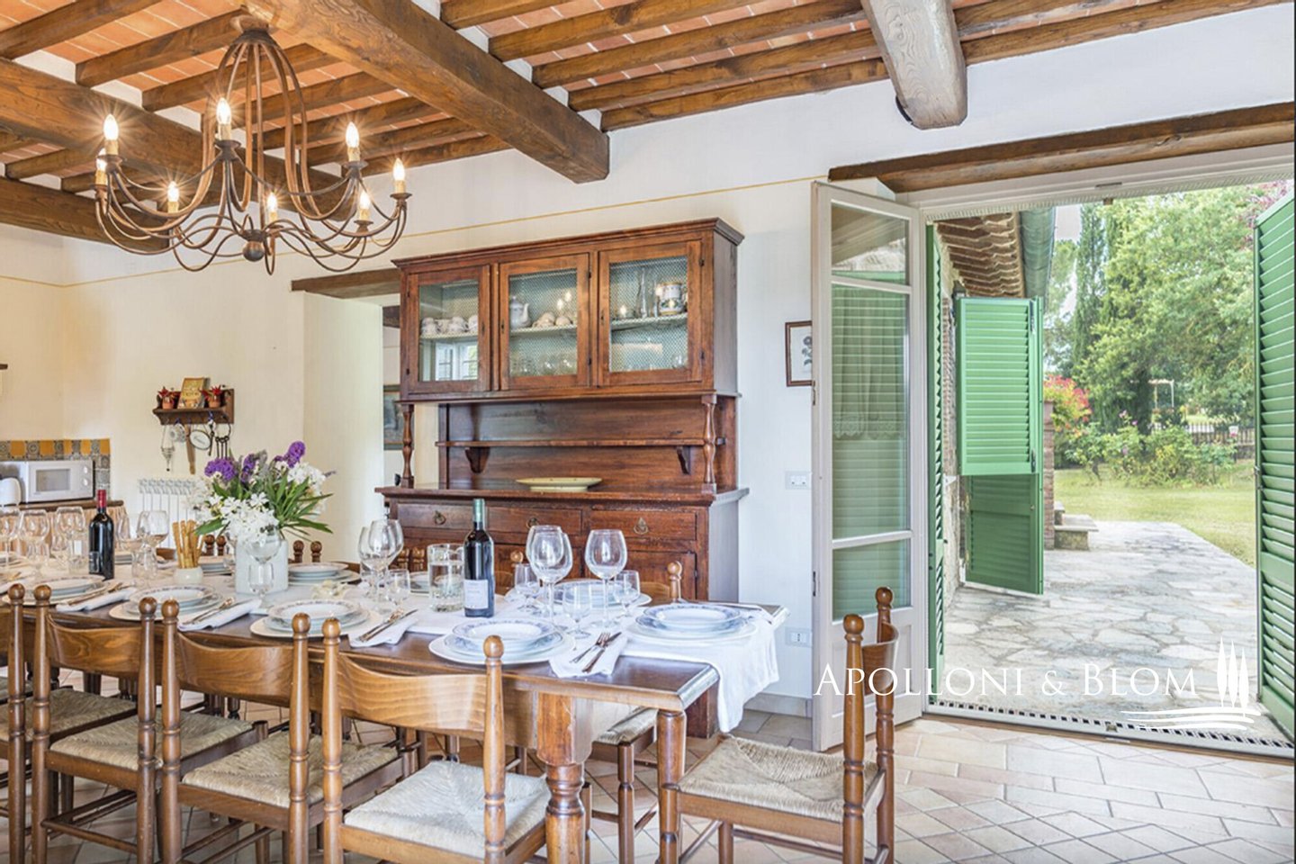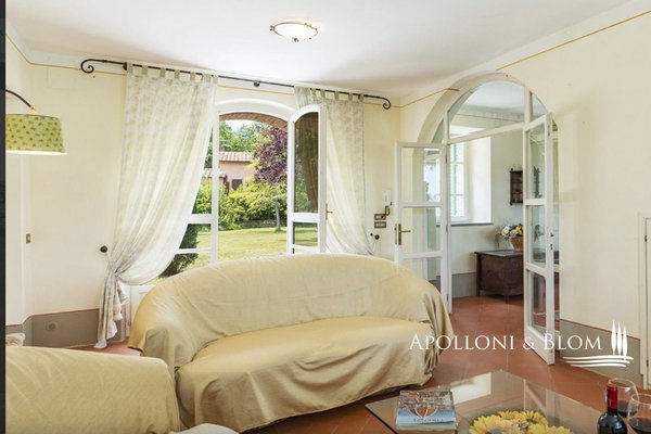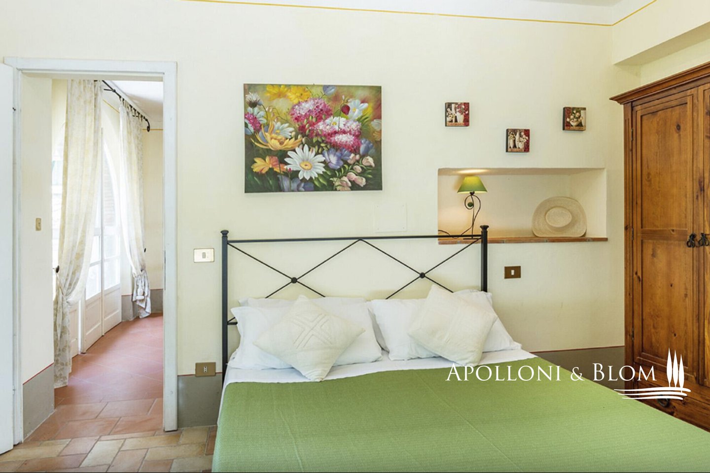 Perfekt restauriertes Bauernhaus aus Stein mit authentischem Charme, Klimaanlage, Schwimmbad, Olivenhain und geschützter Lage, zu verkaufen in Cortona. Strategisch gelegen, nur wenige Minuten von allen Dienstleistungen und dem historischen Zentrum von Cortona, ein Bauernhaus aus Stein aus dem frühen 19. Jahrhundert in einer reservierten Umgebung, umgeben von der Landschaft des Valdichiana. Jahrhundert, das im Jahr 2010 in eine elegante Landvilla umgewandelt wurde, verfügt über eine Fläche von 385 Quadratmetern, die sich auf zwei Hauptetagen und einen traditionellen Keller im Untergeschoss verteilen, und liegt auf einem privaten Grundstück von 9.600 Quadratmetern. Bei der Renovierung wurde die Authentizität des ursprünglichen Gebäudes mit seinen Steinfassaden, Terrakottaböden und freiliegenden Balken hervorgehoben, wobei die historischen Elemente bewahrt und moderne Annehmlichkeiten mit viel Feingefühl eingebaut wurden. Steinkamine und hohe Decken verleihen den Räumen Wärme und zeitlose ländliche Eleganz, während Fensterrahmen und Türen, die komplett durch Doppelverglasung ersetzt wurden, mit den traditionellen salbeigrünen Holzfensterläden der toskanischen Häuser harmonieren. Im Erdgeschoss befindet sich eine Eingangshalle, die zu einem Doppelwohnzimmer mit Steinkamin und einem Essbereich führt. Angrenzend befindet sich eine geräumige Küche im rustikalen Stil mit Kamin, die direkt mit dem Außenbereich mit Innenhof, Pavillon und Grill verbunden ist. Ein Service-Bad, Abstellräume und drei Doppelschlafzimmer, alle mit eigenem Bad, vervollständigen diese Ebene. Eine klassische Steintreppe führt in den ersten Stock, wo sich ein Hauptschlafzimmer mit eigenem Bad und Zugang zu einer privaten Terrasse mit Blick auf die Landschaft, zwei weitere Doppelschlafzimmer, eines mit Terrasse, ein Bad und ein Abstellraum befinden. Alle Räume sind klimatisiert. Im gepflegten Garten wechseln sich Rasenflächen, Blumenbeete, Pinien und hohe Bäume ab, die zu jeder Jahreszeit eine stimmungsvolle Kulisse bilden. In der Mitte befindet sich der Swimmingpool, der von einem eleganten Steinpflaster umrahmt ist, während sich jenseits des Gartens ein Olivenhain mit 100 Bäumen erstreckt, der der Anlage einen authentischen landwirtschaftlichen Charakter verleiht. Ein privater Brunnen speist die automatische Bewässerungsanlage. Heute wird das Anwesen von internationalen Reisenden gewählt, die einen raffinierten Rückzugsort für ihren Urlaub in der toskanischen Landschaft suchen, aber es eignet sich auch perfekt als eleganter privater Wohnsitz, der mit Familie und Freunden bewohnt werden kann.