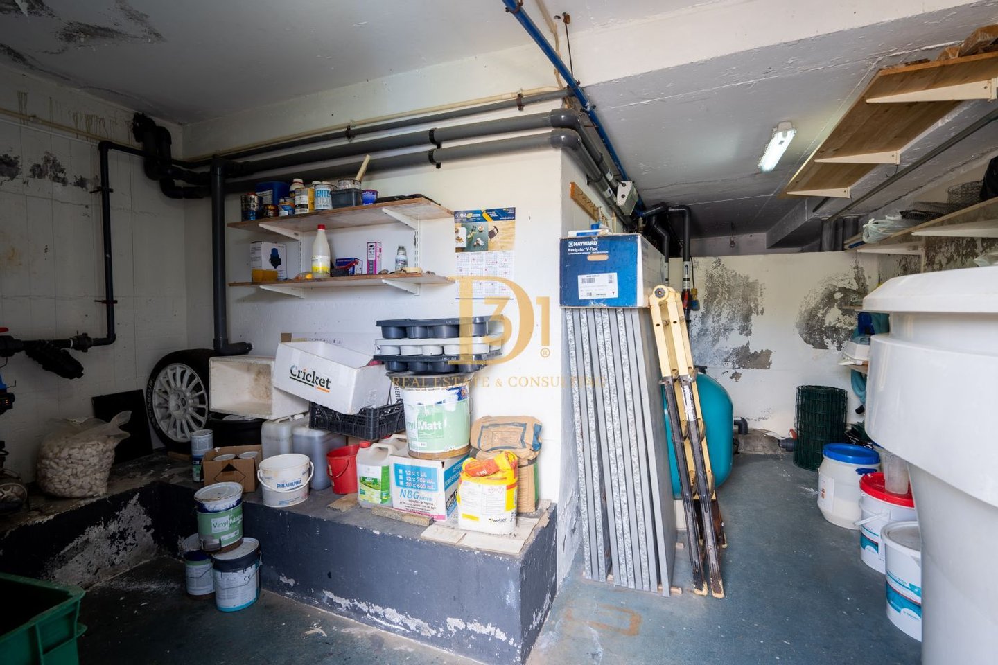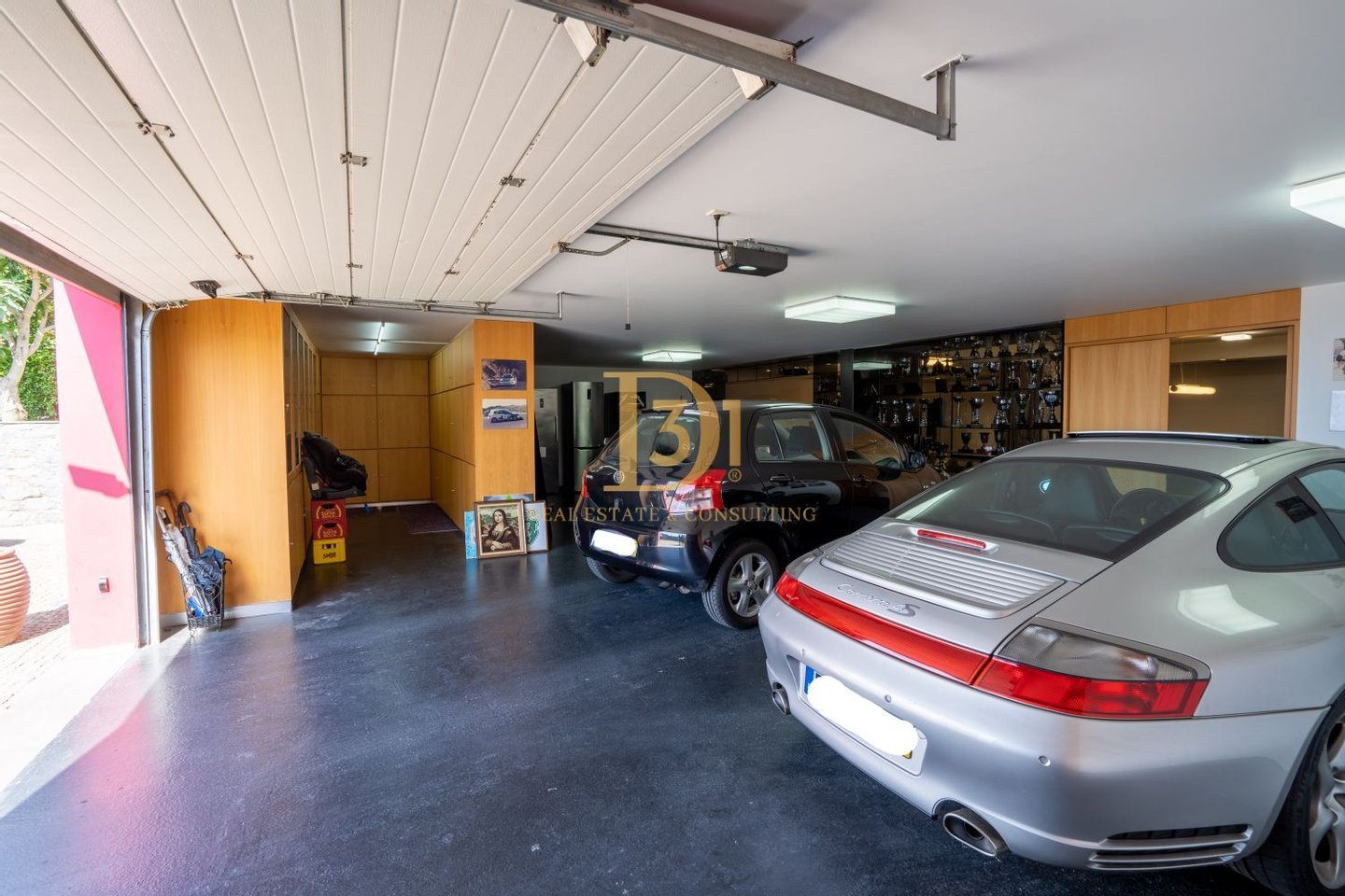 Spacious garage for 5 vehicles;