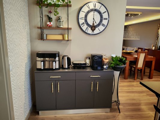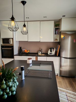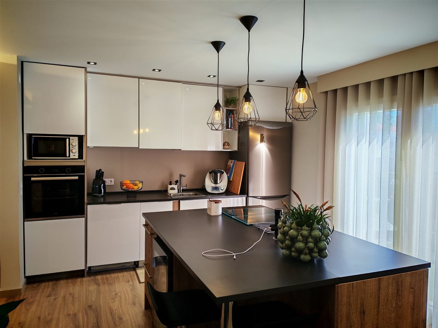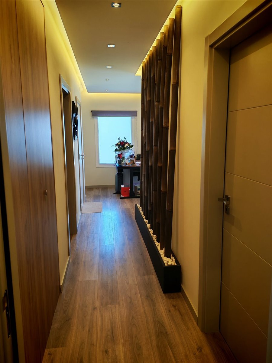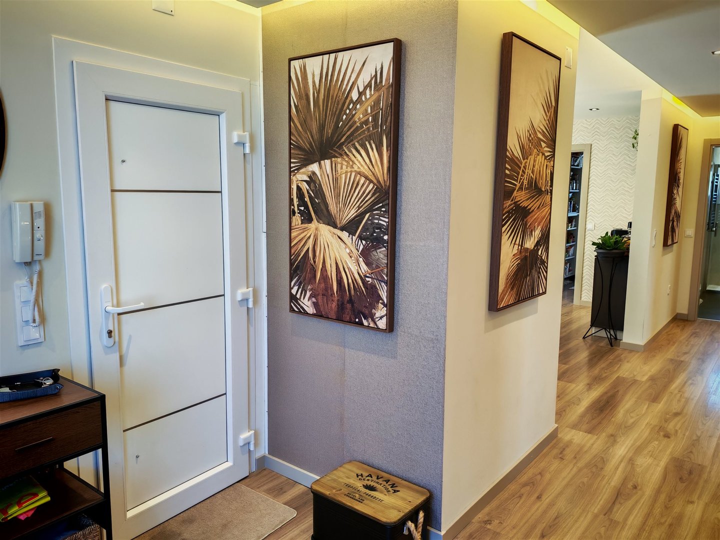 Helle Räume: Der Eingangsbereich ist einladend und beruhigend, führt zu eleganten Treppen, die ins Obergeschoss führen. Die Küche, offen zum Wohnzimmer, verfügt außerdem über eine Speisekammer/Waschküche mit direktem Ausgang nach außen.