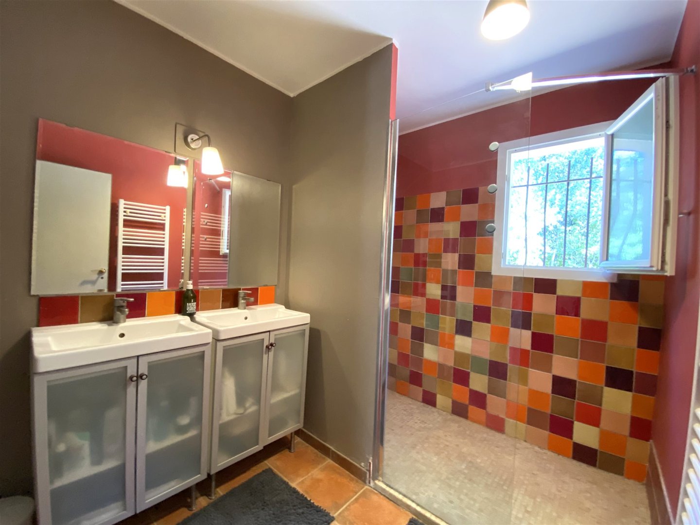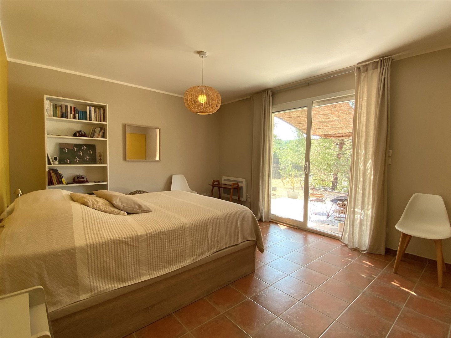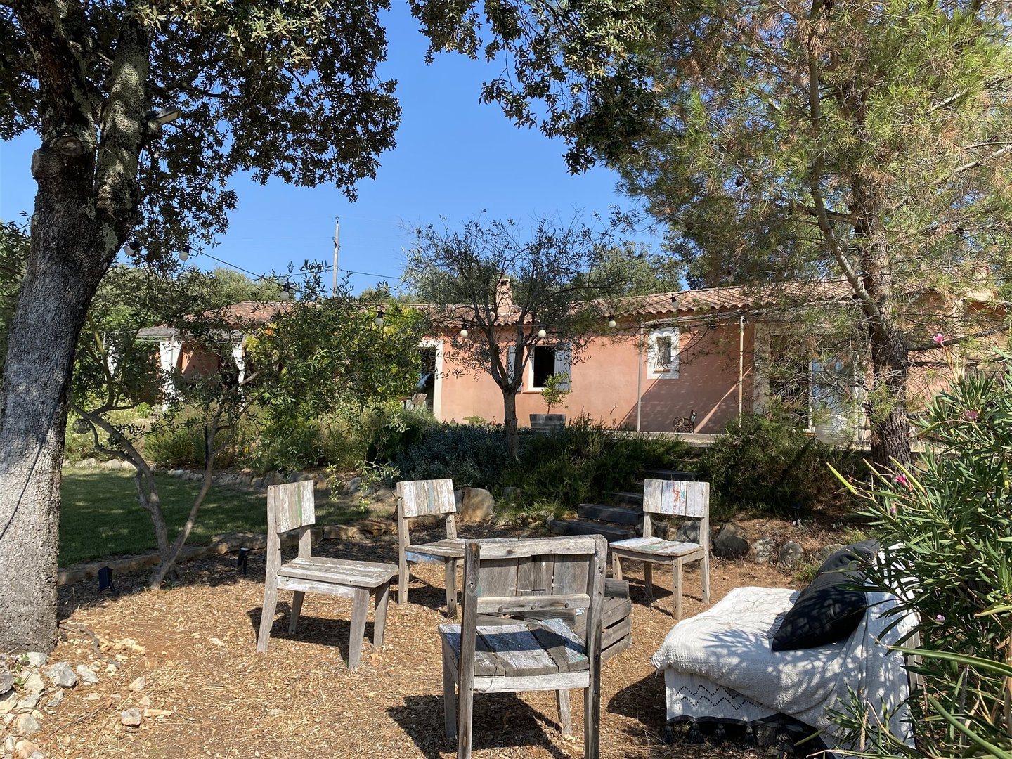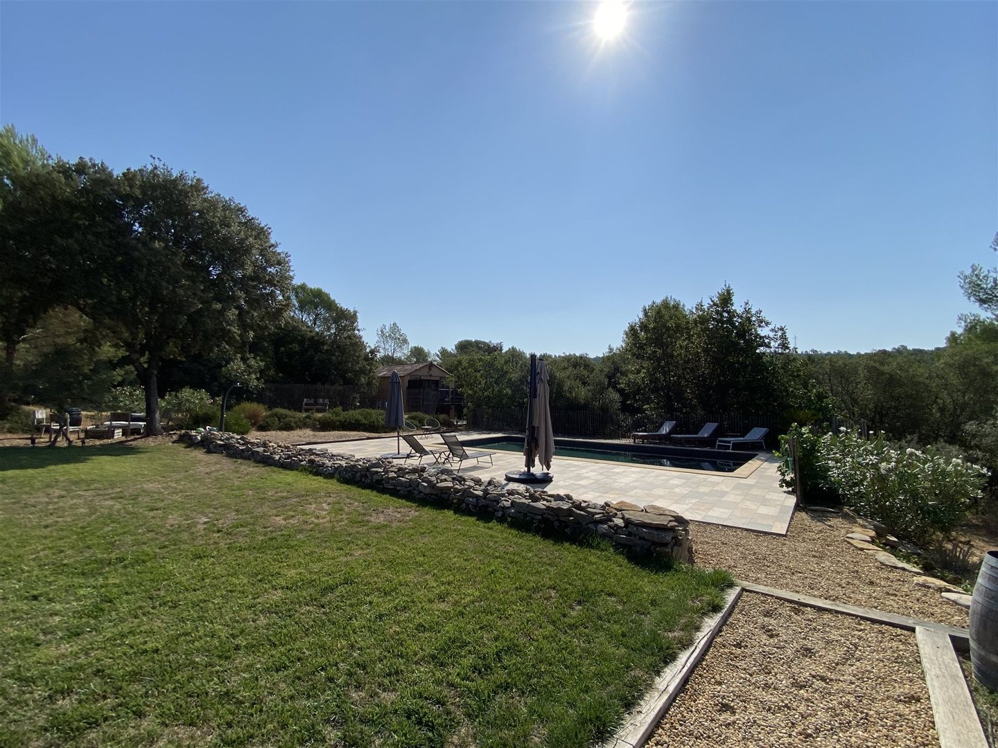 Einfamilienhaus mit einer Fläche von 170 m², dazu eine dependance von 70 m², ideal um Gäste oder Freunde zu empfangen, auf einem eingezäunten Grundstück von 6.000 m². Ein Ort des Friedens und der Harmonie, um neue Kraft zu schöpfen und die provençale Gelassenheit zu genießen... Bouleplatz, beheizter Pool 10 x 5, einige Terrassen mit Eichen- und Olivenbeständen sowie ein Pavillon zum Meditieren oder Ausruhen in der Natur! Das Hauptgebäude besteht aus einem großen Wohnzimmer mit Kathedralenhöhe, Holzofen, einer offenen Küche zum Esszimmer, alles geöffnet zu den Terrassen nach Süden, geschützt von Pergolen. Es gibt außerdem einen Hausanschlussraum, eine Waschküche sowie ein Büro. Schließlich 3 geräumige Schlafzimmer, ein Duschbad, 2 separate WCs und eine Elternsuite mit Ankleidezimmer und Bad mit Badewanne. An das Haus anliegend befinden sich ein Atelier und ein Holzschuppen. Das Haus ist vollständig klimatisiert (Fernsteuerung möglich) und mit Alarmanlage ausgestattet. Wand- und Deckenisolierung, doppelte Verglasung, sehr komfortables Haus. Das Wasser stammt aus einem Bohrbrunnen und grauwassersysteme führen zu einer Sickergrube. Die Dependence besteht im Erdgeschoss aus einem Wohnraum mit offener Küche und Holzofen, im Obergeschoss ein Schlafzimmer mit Zugang zum Balkon, separates WC und Duschbad. Perfekt isoliert mit bodentiefen Fenstern, diese Dependance ist vollständig klimatisiert. Glasfaser und Satellitenantenne ermöglichen die Verbindung über die gesamte Immobilie. Ein Juwel, das es zu entdecken gilt...