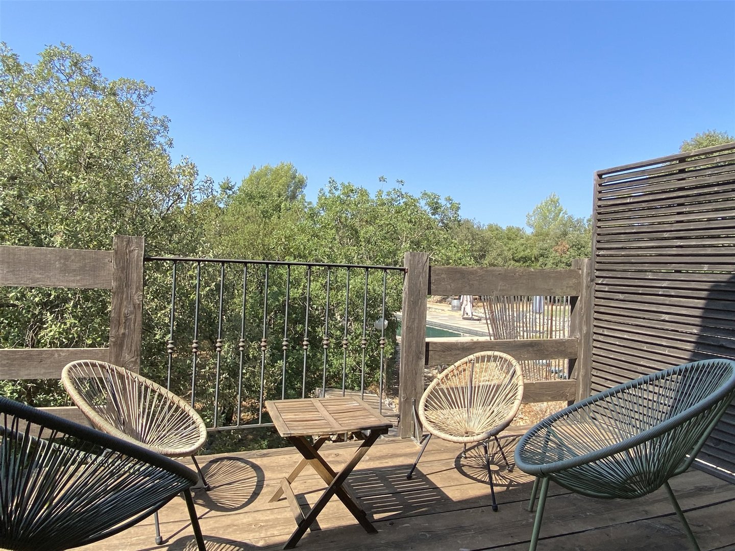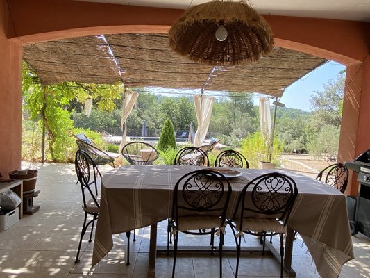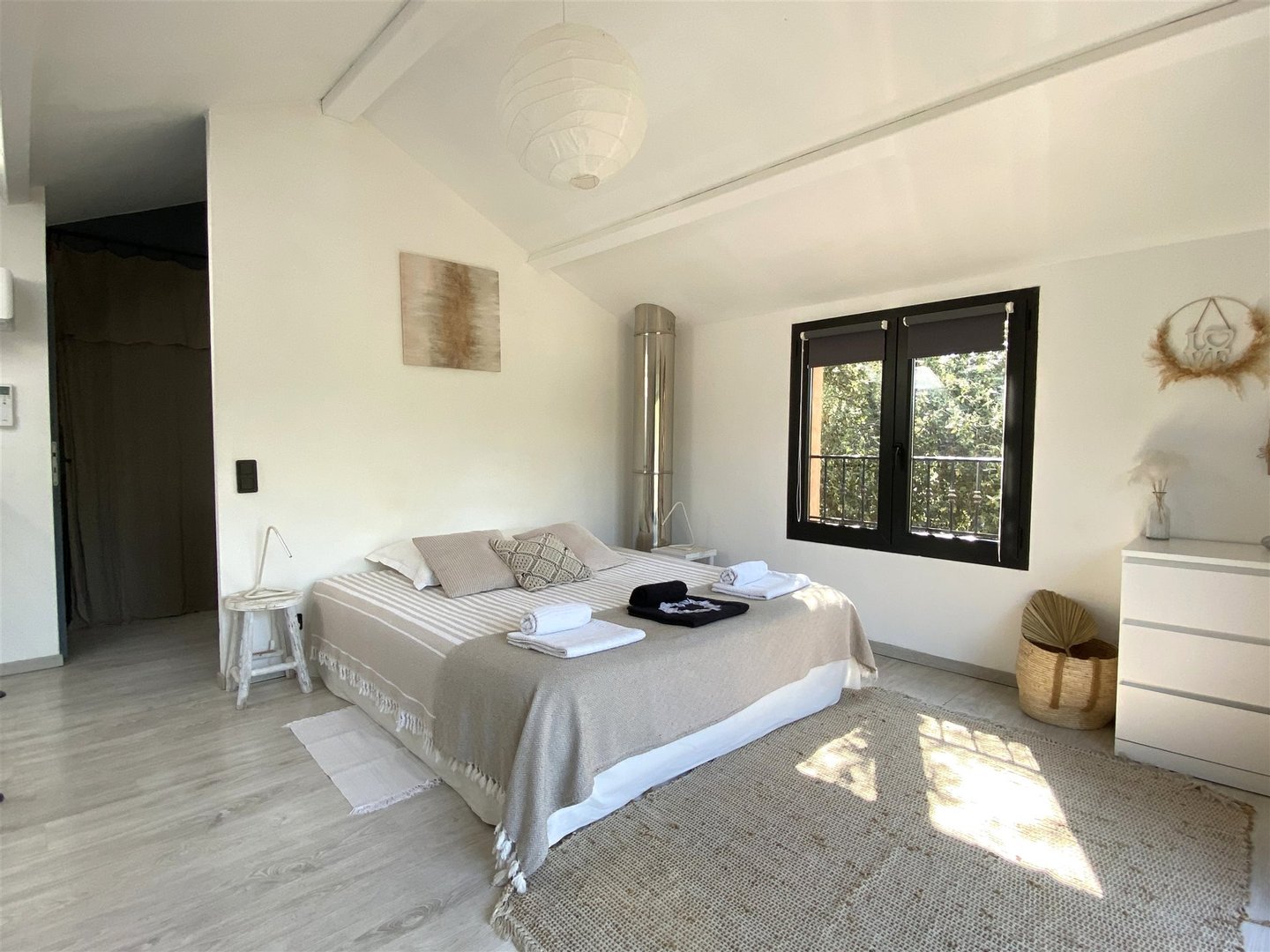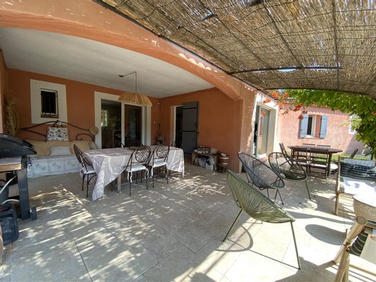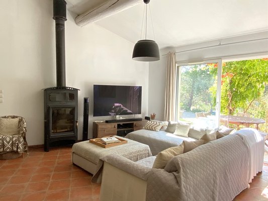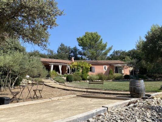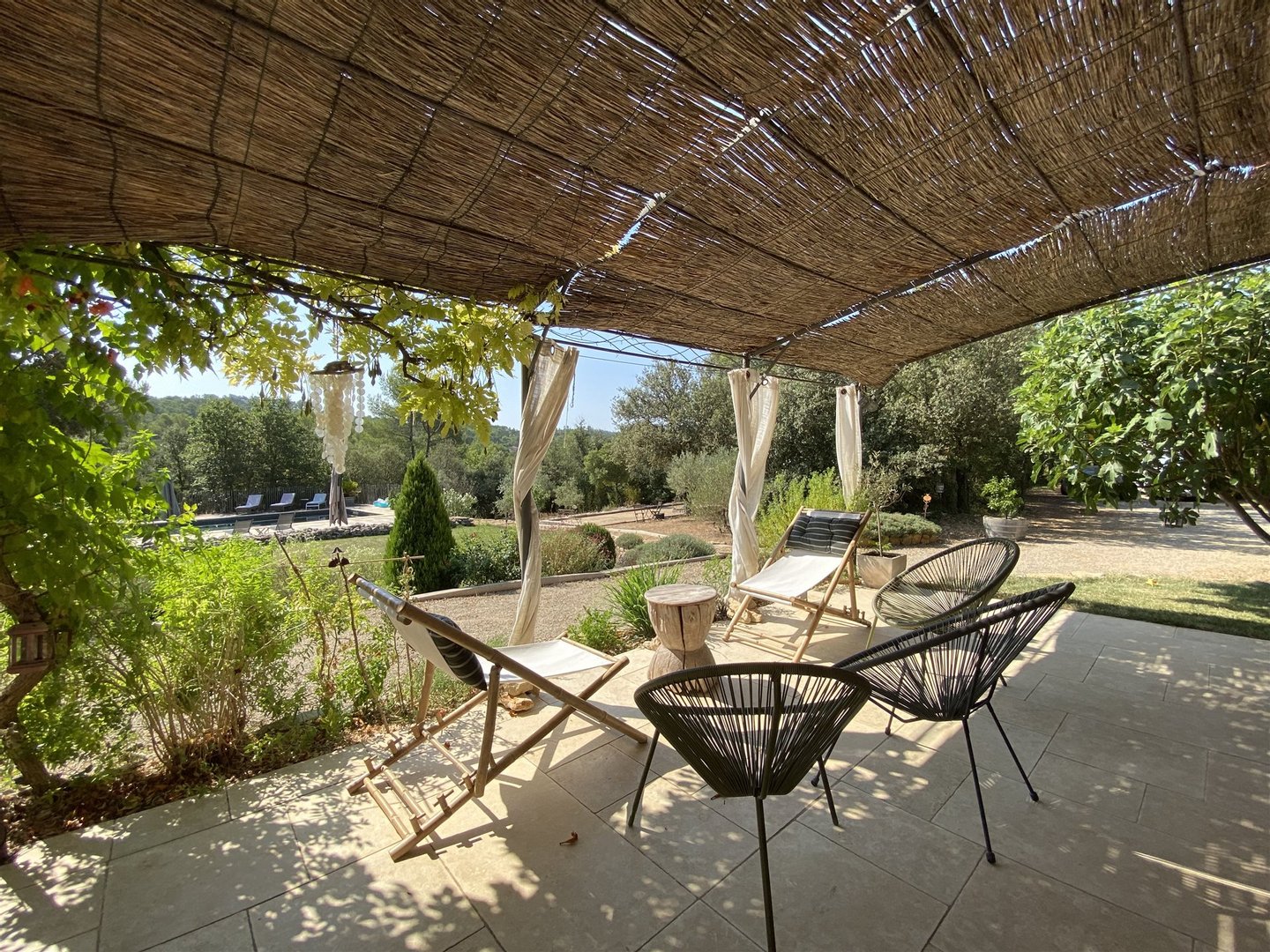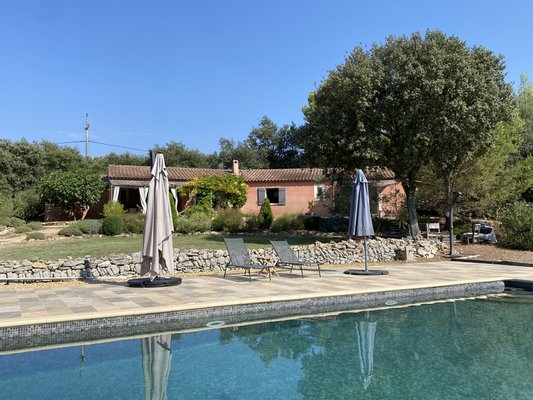 Einfamilienhaus mit einer Fläche von 170 m², dazu eine dependance von 70 m², ideal um Gäste oder Freunde zu empfangen, auf einem eingezäunten Grundstück von 6.000 m². Ein Ort des Friedens und der Harmonie, um neue Kraft zu schöpfen und die provençale Gelassenheit zu genießen... Bouleplatz, beheizter Pool 10 x 5, einige Terrassen mit Eichen- und Olivenbeständen sowie ein Pavillon zum Meditieren oder Ausruhen in der Natur! Das Hauptgebäude besteht aus einem großen Wohnzimmer mit Kathedralenhöhe, Holzofen, einer offenen Küche zum Esszimmer, alles geöffnet zu den Terrassen nach Süden, geschützt von Pergolen. Es gibt außerdem einen Hausanschlussraum, eine Waschküche sowie ein Büro. Schließlich 3 geräumige Schlafzimmer, ein Duschbad, 2 separate WCs und eine Elternsuite mit Ankleidezimmer und Bad mit Badewanne. An das Haus anliegend befinden sich ein Atelier und ein Holzschuppen. Das Haus ist vollständig klimatisiert (Fernsteuerung möglich) und mit Alarmanlage ausgestattet. Wand- und Deckenisolierung, doppelte Verglasung, sehr komfortables Haus. Das Wasser stammt aus einem Bohrbrunnen und grauwassersysteme führen zu einer Sickergrube. Die Dependence besteht im Erdgeschoss aus einem Wohnraum mit offener Küche und Holzofen, im Obergeschoss ein Schlafzimmer mit Zugang zum Balkon, separates WC und Duschbad. Perfekt isoliert mit bodentiefen Fenstern, diese Dependance ist vollständig klimatisiert. Glasfaser und Satellitenantenne ermöglichen die Verbindung über die gesamte Immobilie. Ein Juwel, das es zu entdecken gilt...