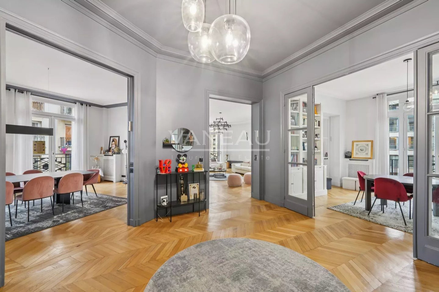 Diese Wohnung findet die perfekte Balance zwischen Familienleben und Unterhaltung, mit großzügigen Volumina und Deckenhöhen von über 3 m.