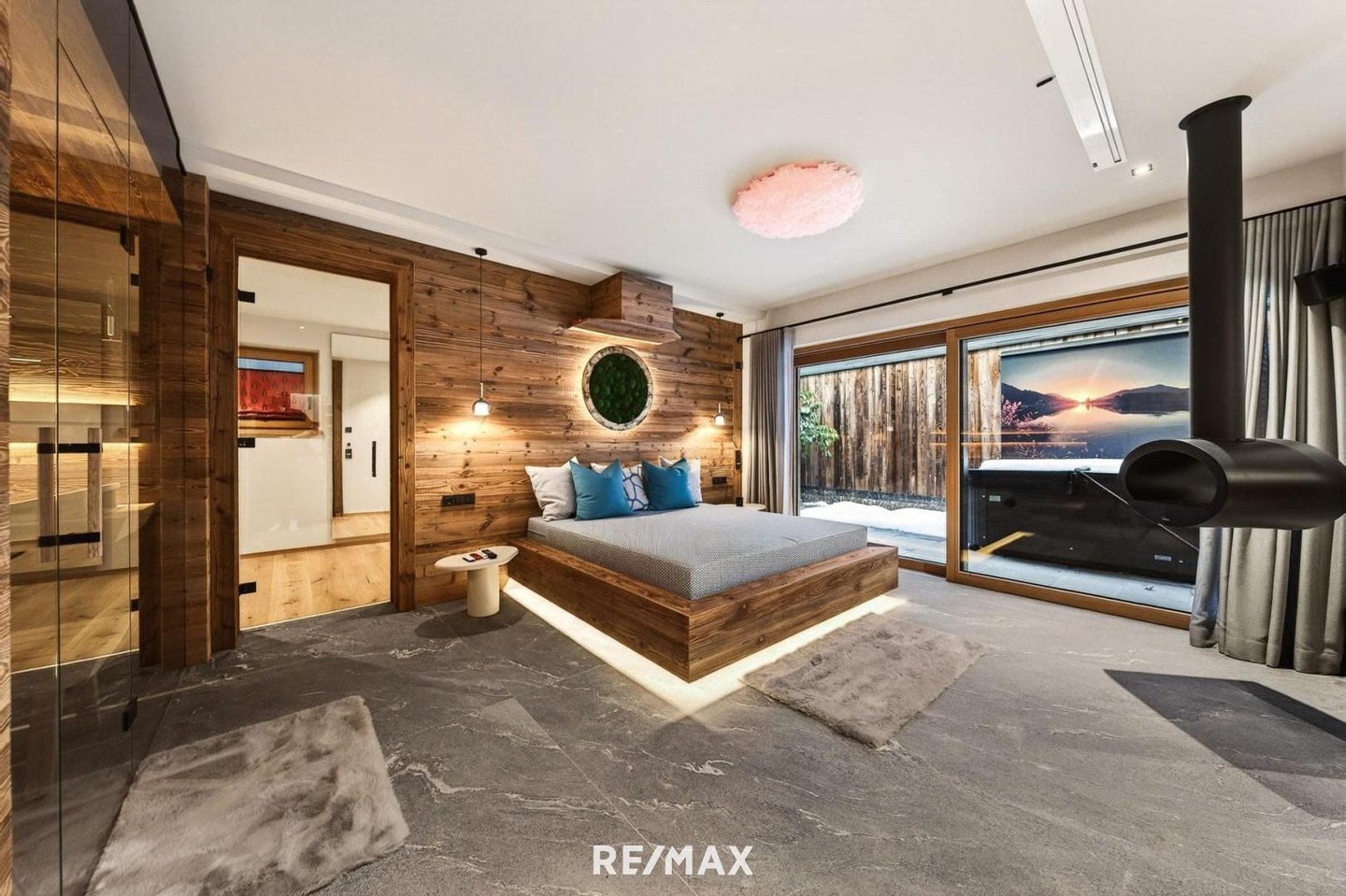 Ein privater Spa-Bereich mit Sauna, Erlebnisdusche und Kamin-Ruhezone sorgt für erholsame Stunden im Innenbereich. Ergänzt wird dies durch einen uneinsehbaren Außenbereich mit Whirlpool sowie einen modern ausgestatteten Fitnessraum – ideal für Entspannung und aktive Erholung gleichermaßen.