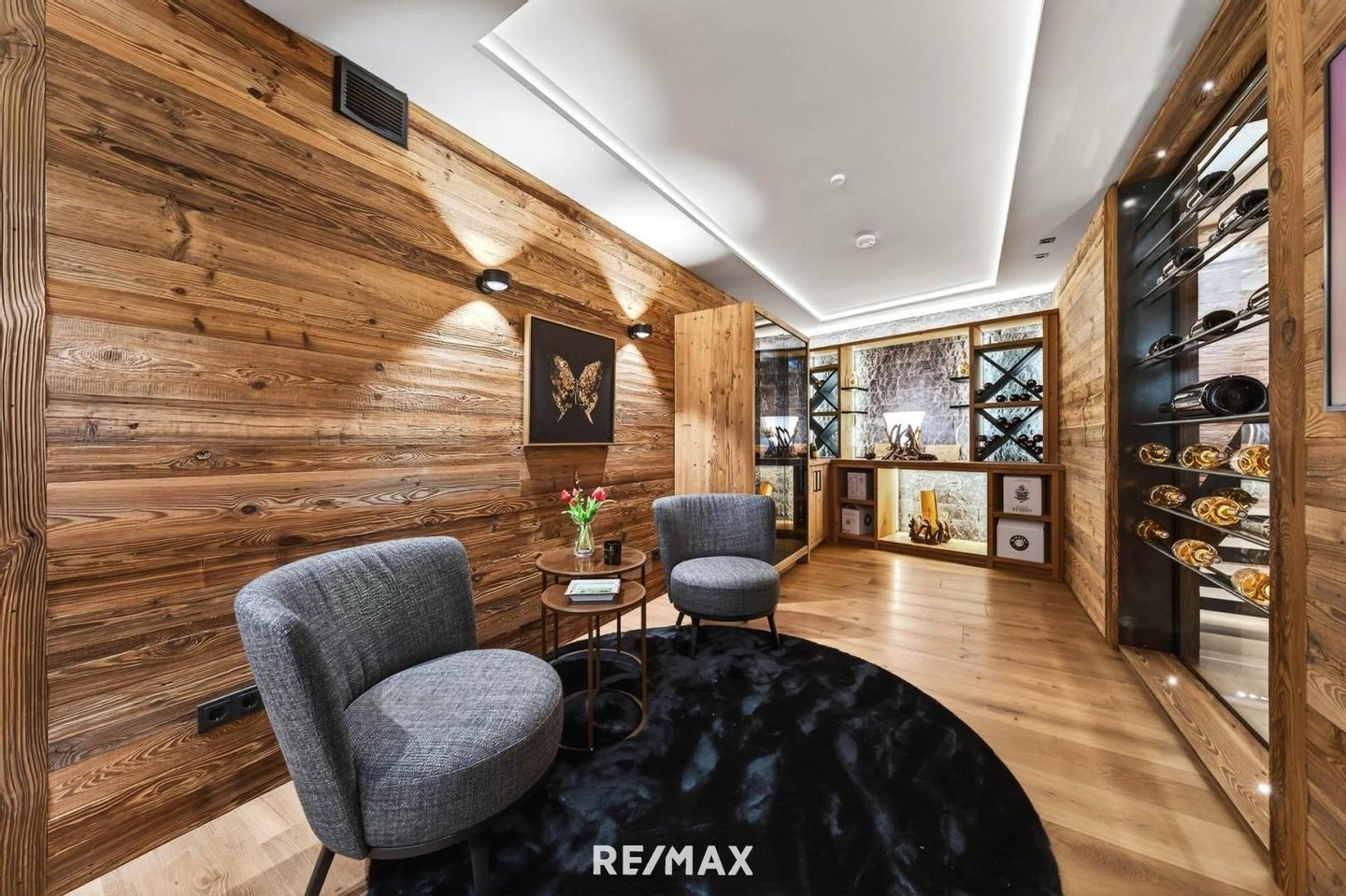 Vier elegante Schlafzimmer, fünf luxuriöse Bäder en Suite, Gäste-WC, Gourmet-Lounge für Wein- und Zigarrenliebhaber mit Rauchabzug, maßgefertigte Designmöbel und exklusive Materialien.