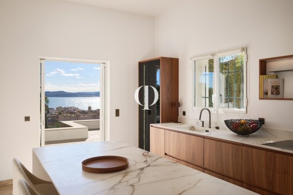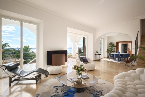Organized on several levels, the villa offers a large living room bathed in light, extended by large openings facing the sea. The volumes are generous, fluid, designed to let in the light and sublimate the panorama. The reception room opens naturally onto the terraces, inviting you to a typical Mediterranean indoor-outdoor life.