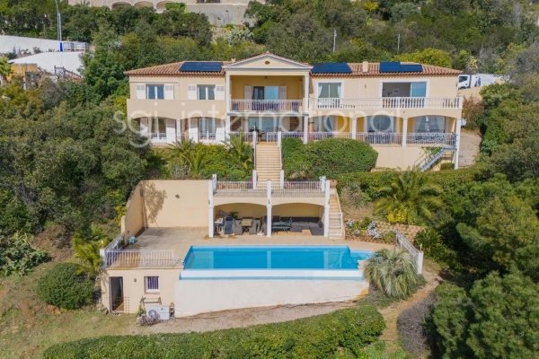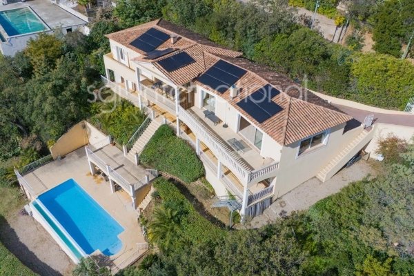 In Les Issambres, nur 1 km vom Meer entfernt und mit einem außergewöhnlichen Panoramablick auf das Meer, besteht diese Villa mit insgesamt 290 m2 Wohnfläche auf einem Grundstück von 1.568 m2 mit Bäumen aus 4 separaten Wohnungen von jeweils 80 m2, die