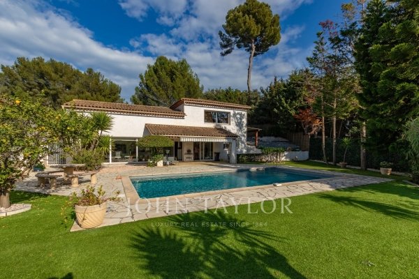 Eingebettet in eine üppige und friedliche Umgebung in Antibes, ist diese Villa durch ihre großzügigen Größen und hellen Wohnbereiche charmant. Das große Wohnzimmer öffnet sich großzügig zu einer funktionalen, offenen Küche mit insgesamt 83 m², ergänzt durch einen Waschraum mit Gasboiler. Große Erkerfenster bieten atemberaubende Ausblicke auf Pool und Garten und laden Sie ein, das mediterrane Klima das ganze Jahr über zu genießen.