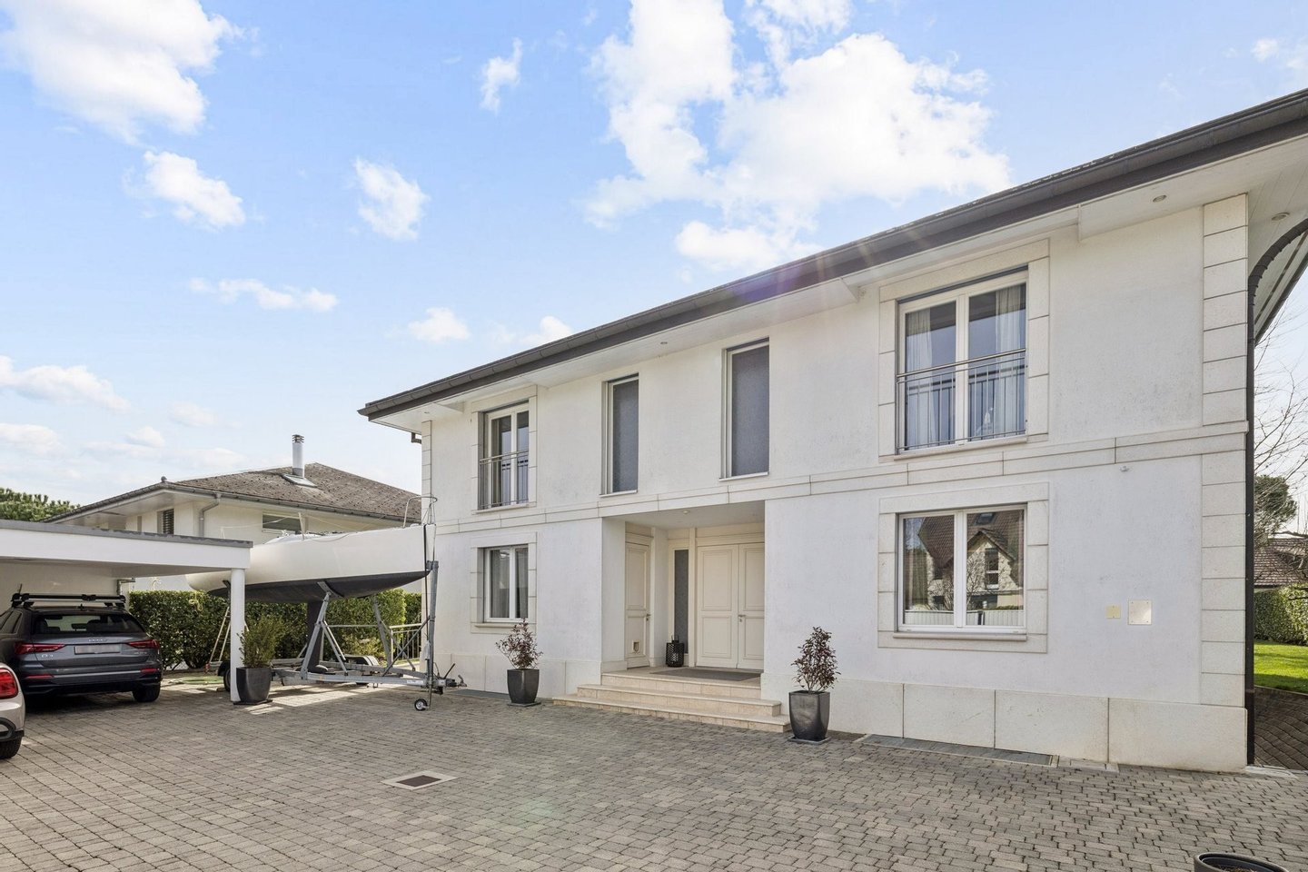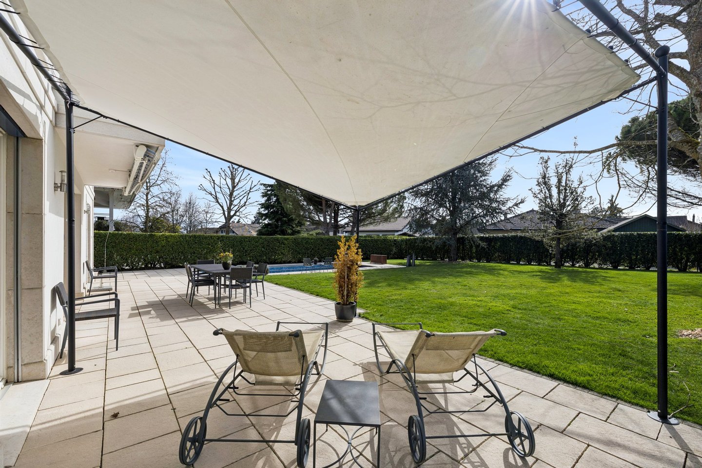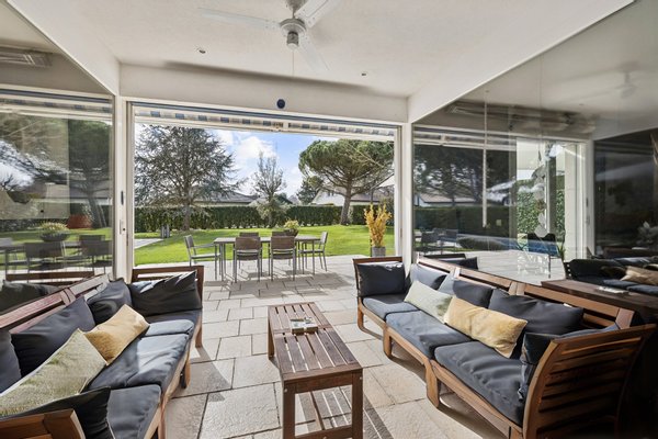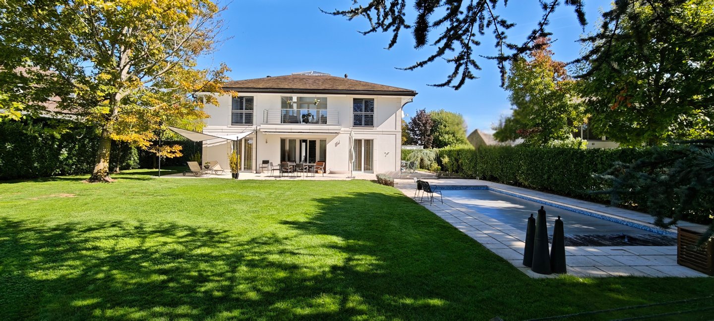 Das Atrium verkörpert eine zeitgenössische Vision eines außergewöhnlichen Zuhauses: einen Ort, an dem die Architektur verblasst und Bewegung und Klarheit weicht. Dieses einzigartige Anwesen zeichnet sich durch seine majestätischen Volumina, außergewöhnliche Deckenhöhe und besonders weitläufige Galerien aus. Dieses Design bietet ein unmittelbares Raumgefühl, ideal für ein dynamisches Familienleben. Die Verbindung zwischen den verschiedenen Ebenen wird durch eine hängende Treppe gewährleistet, deren schwebende Stufen ohne Stufen Aussicht und Licht das Haus von einem Ende zum anderen durchqueren. Das Erdgeschoss wurde als gemeinsamer Wohnraum konzipiert, sowohl praktisch als auch elegant. Vom Eingang aus ermöglicht eine separate Garderobe, die die tägliche Organisation der ganzen Familie diskret ermöglicht. Das geräumige Wohnzimmer mit Kamin und das Esszimmer werden durch Parkettböden mit breiten und tiefen Dielen bereichert, was eine warme und authentische Atmosphäre schafft. Die Küche, ein echtes Nervenzentrum, kommuniziert flüssig mit den Empfangsbereichen, während ein elegantes Büro und eine Gästesuite für perfekten Komfort bei der Arbeit oder bei der Beherbergung von Angehörigen sorgen. Oben nimmt das Konzept des Atriums seine volle Dimension an. Hier wird die Vertikalität mit spektakulärer Deckenhochachtung gefeiert, die am Gipfel des Deckes von einer Glaskonstruktion gekrönt wird. Dieser Lichtpavillon flutet das gesamte zentrale Atrium mit zenithaler Klarheit und schafft eine ständige Verbindung zum Himmel. Die Master Suite sticht als Zufluchtsort des Wohlbefindens hervor, mit einem maßgeschneiderten Umkleideraum und einem Badezimmer mit einem privaten Hammam. Drei weitere geräumige Schlafzimmer – eines mit eigenem Badezimmer – vervollständigen diese sonnenverwöhnte Ebene, ebenso wie eine überdachte Terrasse mit Blick auf den Garten. Die -1-Etage ist der aktiven Entspannung und Vielseitigkeit gewidmet. Ein großer multifunktionaler Raum beherbergt sowohl ein Heimkino als auch einen Fitnessbereich und bietet einen idealen Spielplatz für die Freizeit der Familie. Diese Ebene beinhaltet außerdem ein eigenständiges Studio mit privatem Eingang, Küche und Badezimmer, perfekt zum eigenständigen Aufnehmen von Freunden oder zur Unterbringung von Personal. Ein Weinkeller, eine Werkstatt und technische Räume sorgen für die perfekte Logistik des Hauses. Die Außenseiten sind eine natürliche Erweiterung dieser fließenden Architektur. Das Grundstück befindet sich auf einem 1.300 m² großen Grundstück, das von alten Bäumen geschützt ist, und öffnet sich zu einer weitläufigen, sonnigen Terrasse mit einem Grillplatz und einem Pool mit wechselnden Spiegelungen. In unmittelbarer Nähe zur Küche ermöglicht eine Terrasse das Essen im Freien, während ein angelegter Gemüsegarten die ganze Familie dazu einlädt, täglich frische Produkte zu genießen. Das Ensemble wird durch ein elektrisches Tor gesichert und verfügt über einen Doppelcarport, einen Fahrradabstellraum und einen Gartenschuppen, der perfekt den Bedürfnissen eines aktiven und ruhigen Lebens in Coppet entspricht. Coppet ist eine begehrte Gemeinde an der Vaud-Riviera, nur 15 Minuten von Genf und ihrem internationalen Flughafen entfernt. Gut an Zug und Autobahn angebunden, bietet es sowohl die Ruhe eines historischen Dorfes am Ufer des Genfersees als auch unmittelbare Nähe zu allen Annehmlichkeiten. Verkehr und Einrichtungen