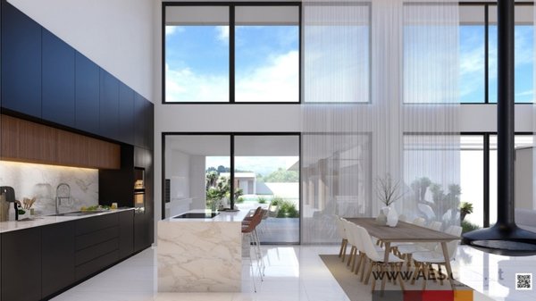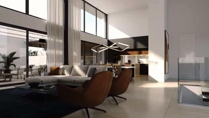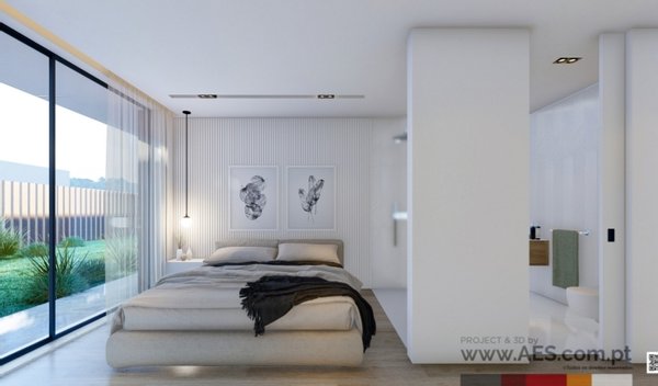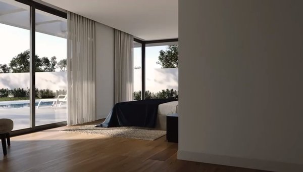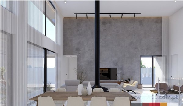 Es ist ein einzigartiges Haus, das uns durch seine großen Fenster aus fast unsichtbarem Aluminium in eine andere Dimension entführt, ohne Grenzen zwischen Innenraum und äußerem Wesen zu schaffen.